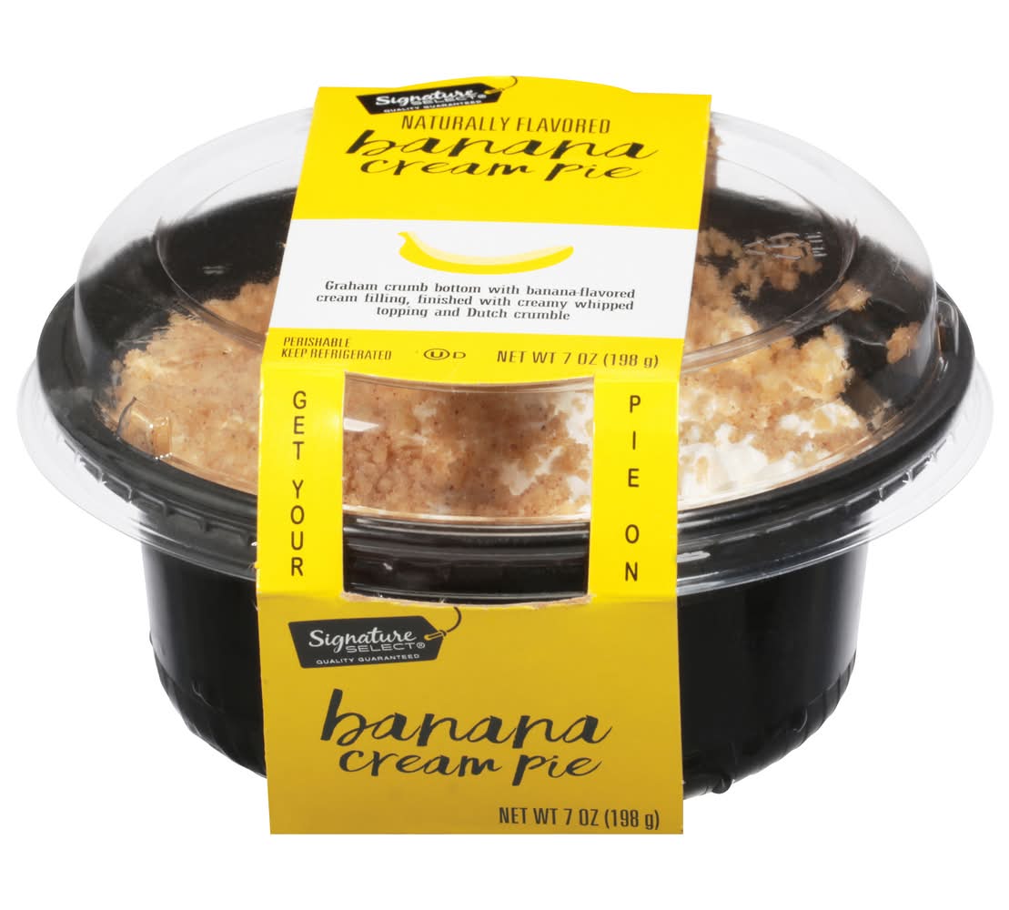 Graham crumb bottom with banana-flavored cream filling, finished with creamy whipped topping and Dutch crumble. Naturally flavored. Get your pie on. Quality guaranteed. Our promise, quality & satisfaction 100% guaranteed or your money back. www.betterlivingbrandsLLC.com. SmartLabel: Scan for more food information or call 1-888-723-3929. Packaging: Reusable