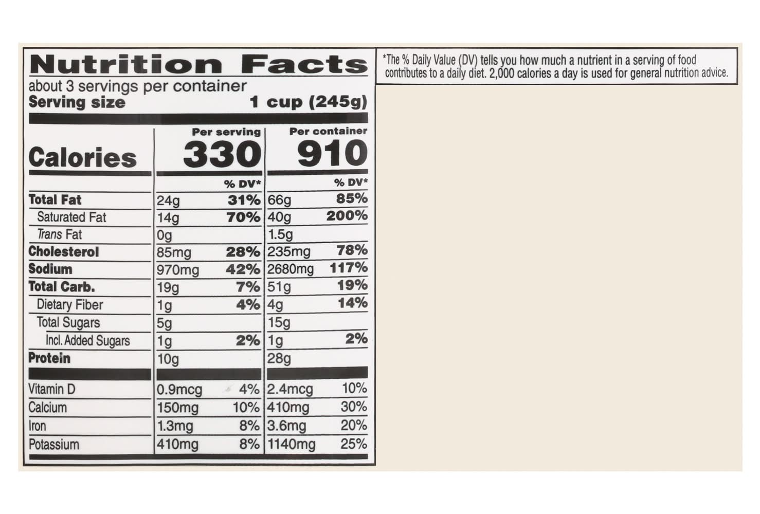 • Flavor: New england style • Number of servings: 3 • Lucerne Foods, Inc., Pleasanton, CA • Packaging: Reusable