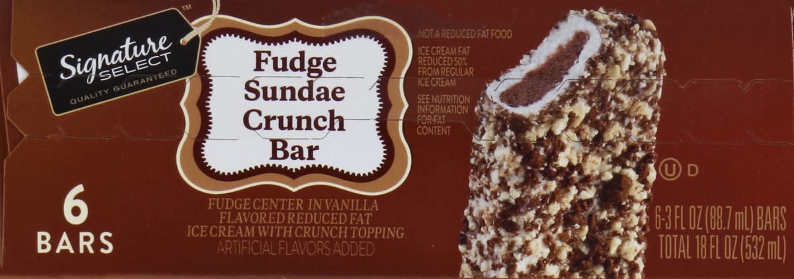 Signature Select Fudge Sundae Crunch Ice Cream Bars, Vanilla (6.3 oz, 6 ct)