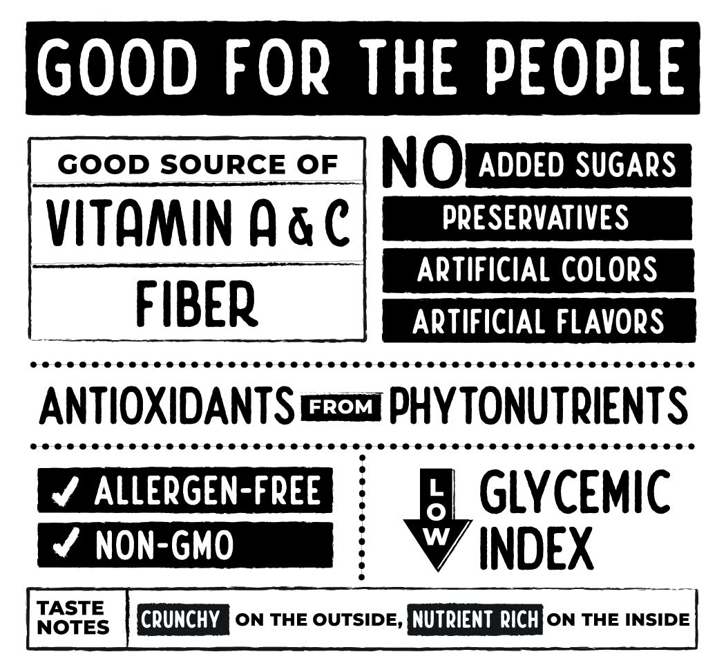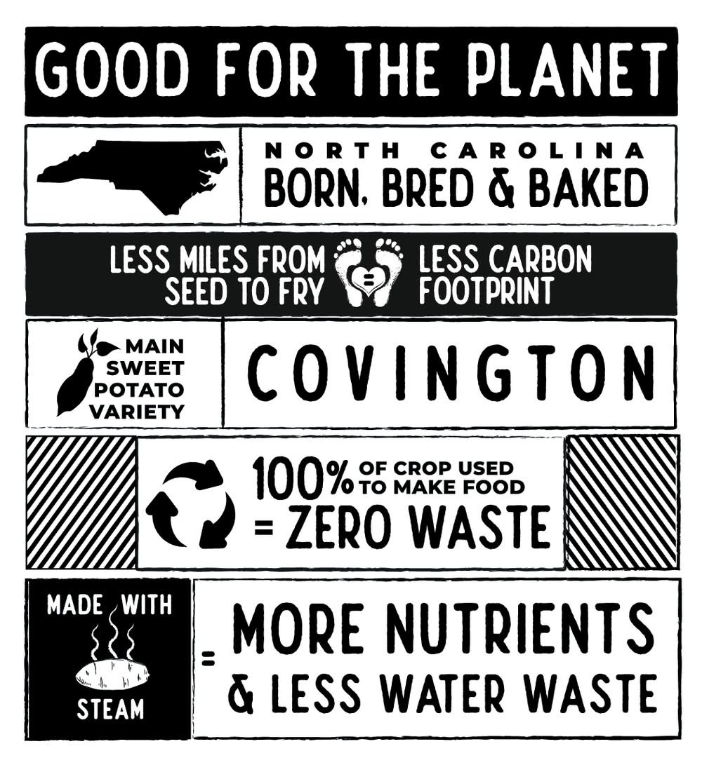 Ingredients: Fresh Organic Sweet Potatoes (90%), Organic Avocado or Olive Oil (6%), Organic Batter (4%) (Organic Potato Starch, Organic Corn Starch, Salt, Leavening (Sodium Bicarbonate)