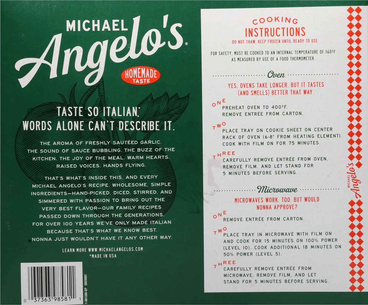 Directions for use: Cook thoroughly. Cooking Instructions: Do not thaw. Keep frozen until ready to use. For safety. Must be cooked to an internal temperature of 160 degrees F as measured by use of a food thermometer. Oven: Yes, ovens take longer, but it tastes (and smells) better that way. One. Preheat oven to 400 degrees F. remove entree from carton. Two. Place tray on cookie sheet on center rack of oven (6-8 inches from heating element). Cook with film on for 75 minutes. Three. Carefully remove entree from oven. Remove film, and let stand for 5 minutes before serving. Microwave: One. remove entree from carton. Two. Place tray in microwave with film on and cook for 15 minutes on 100% power (level 10). Cook additional 18 minutes on 50% power (level 5). Three. Carefully remove entree from microwave, remove film, and let stand for 5 minutes before serving. Keep frozen. Storage recommendation: Keep frozen.