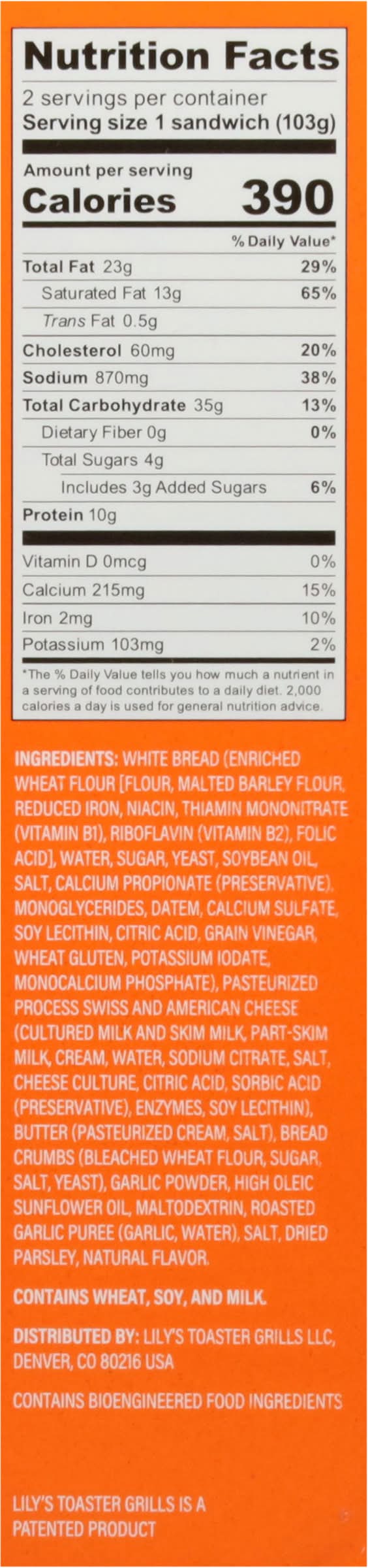 Lily's Toaster Grills Gralic Bread Sandwich, Grilled Cheesy (7.3 oz, 2 ct)