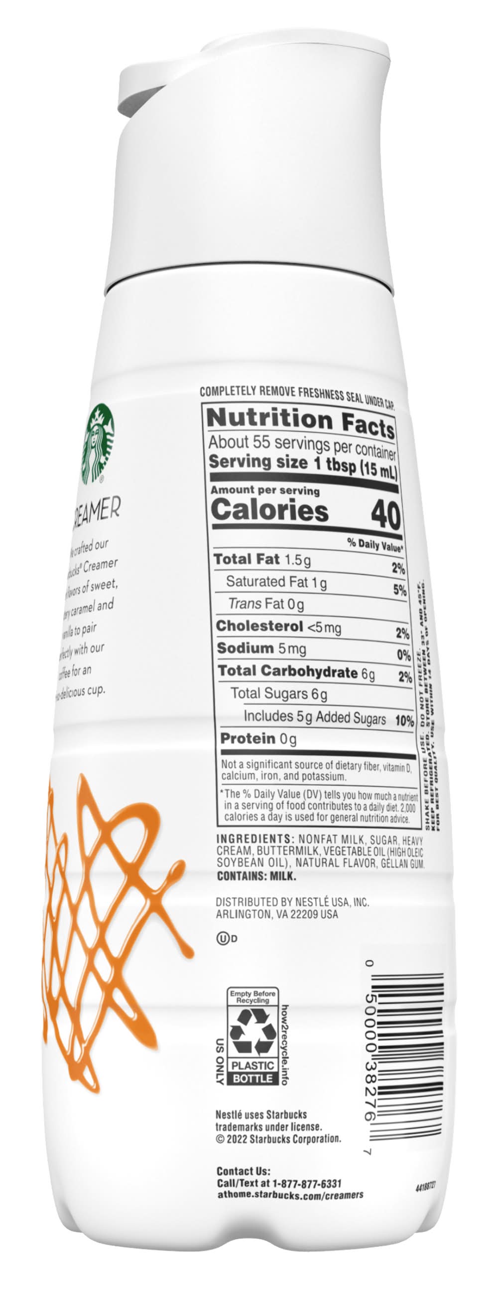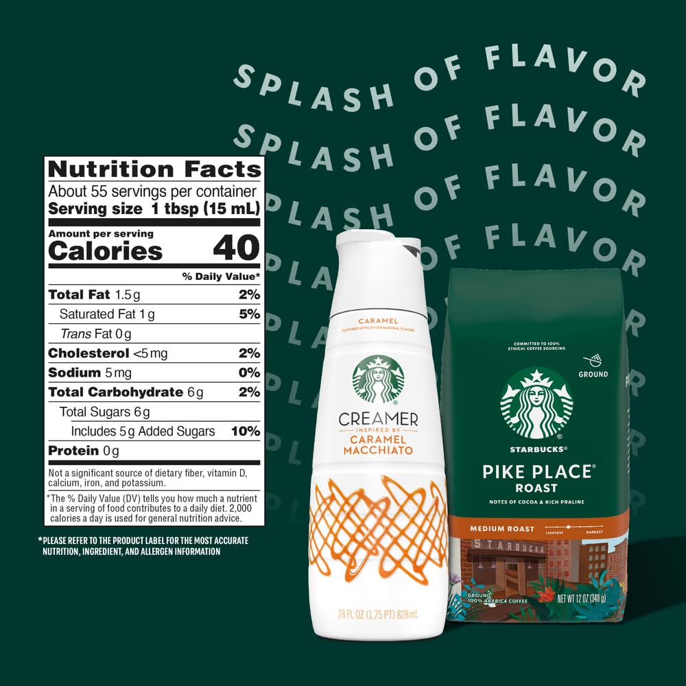 Indulge in this Flavored Coffee Creamer. Exclusively designed for all coffee lovers. This creamer is carefully crafted with layers of sweet buttery caramel and vanilla flavor. Each sip is a testament to our dedication to quality and flavor. Whether you’re enjoying a hot cup in the morning or an iced coffee during your afternoon break, this dairy creamer pairs perfectly with our coffee for an oh-so-delicious cup every time. With this creamer, you can bring the experience right to your kitchen. • Flavor: Caramel macchiato • Packaging: Reusable