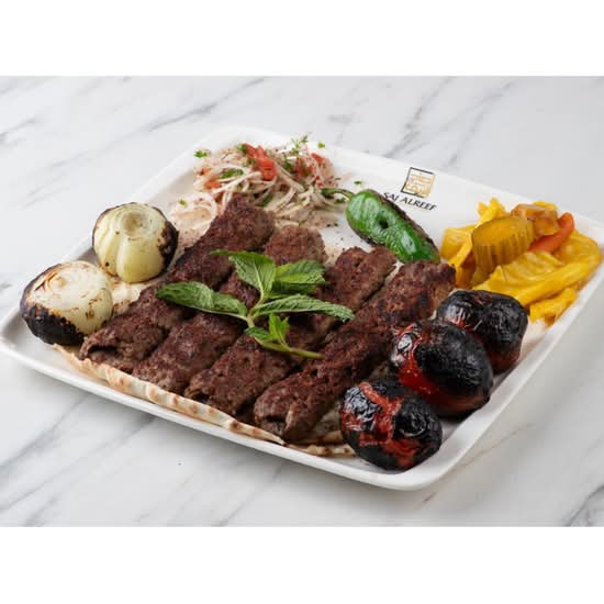 Iraqi kabob comes with extra grilled vegetables and tanoor bread. Grilled over a 100% natural charcoal grill. Available in half order (2 Skewers) & full order (4 Skewers). Also available in regular or spicy.