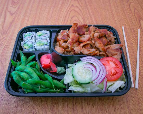 Served with four pieces of California roll, garden salad, edamame and rice, and ginger dressing.
