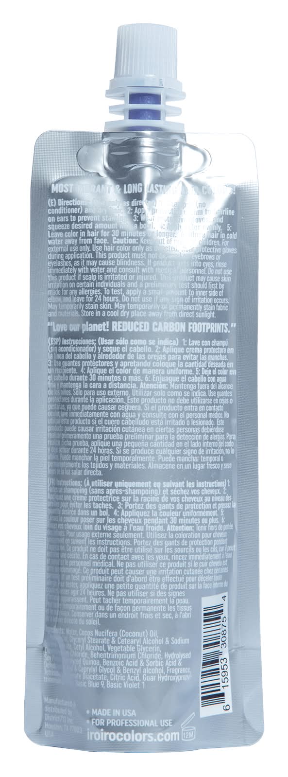 Iroiro is a 100% vegan and cruelty-free semi-permanent hair color. Most vibrant and long-lasting, iroiro color proves that natural does not mean color will fade quickly. Available in a eco-friendly spout pouch with tamper proof cap. As well as coloring your hair, Iroiro provides your hair with the nourishment it needs to stay healthy – which is especially important when it comes to coloring your hair – thanks to the natural coconut oil in the ingredients, which helps to keep your hair moisturized throughout the coloring process. Here’s a list of harsh chemicals WE DON'T USE in our products: PEGs, Paraben, Methylisothiazolinone, Methylchloroisothiazolinone, Synthetic fragrances, Peroxide, Ammonia, PPD, Alcohol. • Color: 30 violet • Size: 4 • Packaging: Reusable