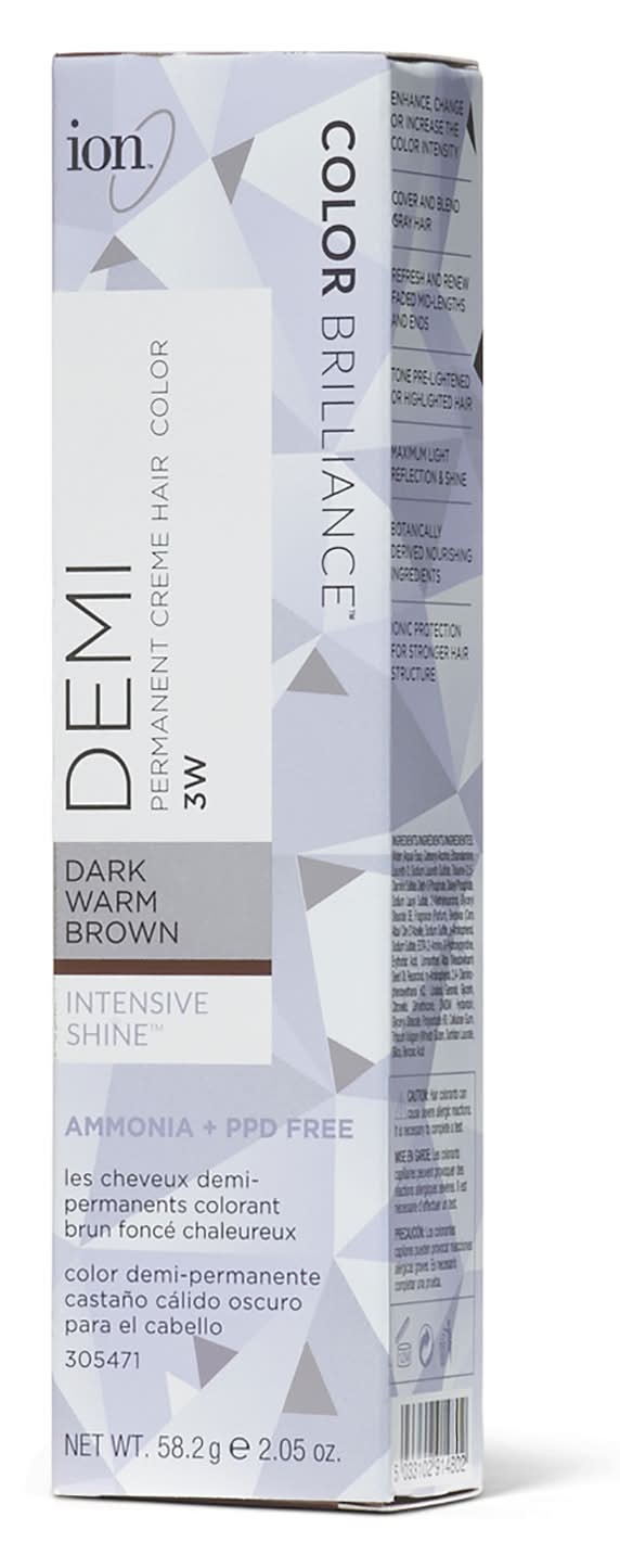 iON Intensive Shine Demi Permanent Creme Hair Color, 3W Dark Warm Brown (2.05 oz)