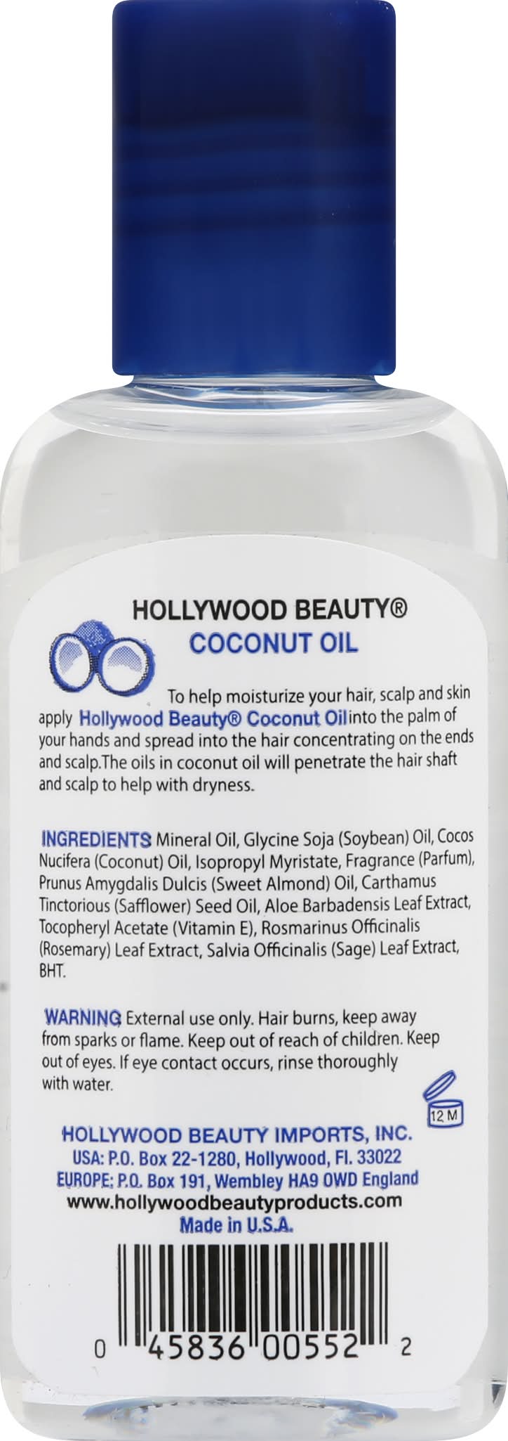 Coconut Oil • Hollywood Beauty Imports, Inc., P.O. Box 22-1280, Hollywood, FL, 33022 • Packaging: Reusable