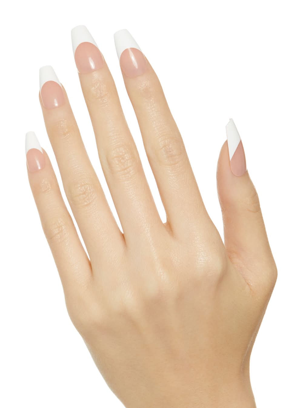 Application: clean your nails with acetone polish remover; select correct size nail for each finger and set aside in order. nails are sized by number, noted on nail easy-apply tab. 1. apply glue to back of artificial nail. 2. apply glue to natural nail. 3. align with cuticle, press on & hold for 5 seconds. 4. remove tab by bending down, then up. expert tip: apply enough glue to avoid air pockets, secure adhesion and extend wear. removal: trim & file surface to disrupt protective top coat. apply kiss glue off remover between artificial and natural nails or soak nails in acetone polish remover until soft. wipe off softened nail & glue. do not force or pull nails off.