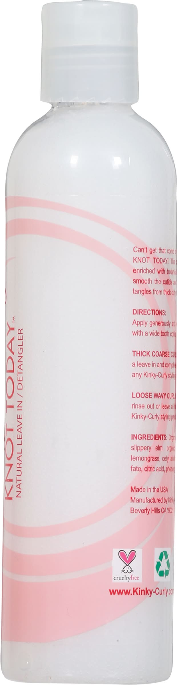 Directions: apply generously and work through troubled sections eh a wide tooth comb. thick coarse curls: use a generous amount as a leave in and completely detangle hair before applying any kinky-curly styling product. loose wavy curls: use a moderate amount as a rinse out or leave a little on the ends before applying kinky-curly styling products.