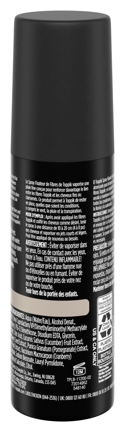 Toppik FiberHold Spray is a fine mist designed to strengthen the bond between Toppik Hair Fibers and your existing hair, producing longer-lasting results and making your hair shine. There are countless reasons to use Toppik hair thickening and hair care products, and this hair fiber holding spray is no exception. Don’t let thinning hair knock your confidence. This easy-to-use hair fiber spray will keep your hair looking beautiful by intensifying the hold between hair fibers and your natural hair while adding beautiful, natural-looking shine. Toppik FiberHold hair fibers spray also helps hair fibers resist wind, rain, and perspiration for long-lasting results in all conditions. You no longer need to worry about your hair product staying in place. Toppik Fiber Hold Spray is the perfect finishing step after applying and styling hair fibers. Simply apply this hair spray mist in short, light sprays and reapply as needed. This hair care for women and men dries quickly, leaving your hair set and ready for the day. Toppik has a long history and is trusted by both professional stylists and users. The results have changed the hair industry, and have been touted as must-have hair products for decades.