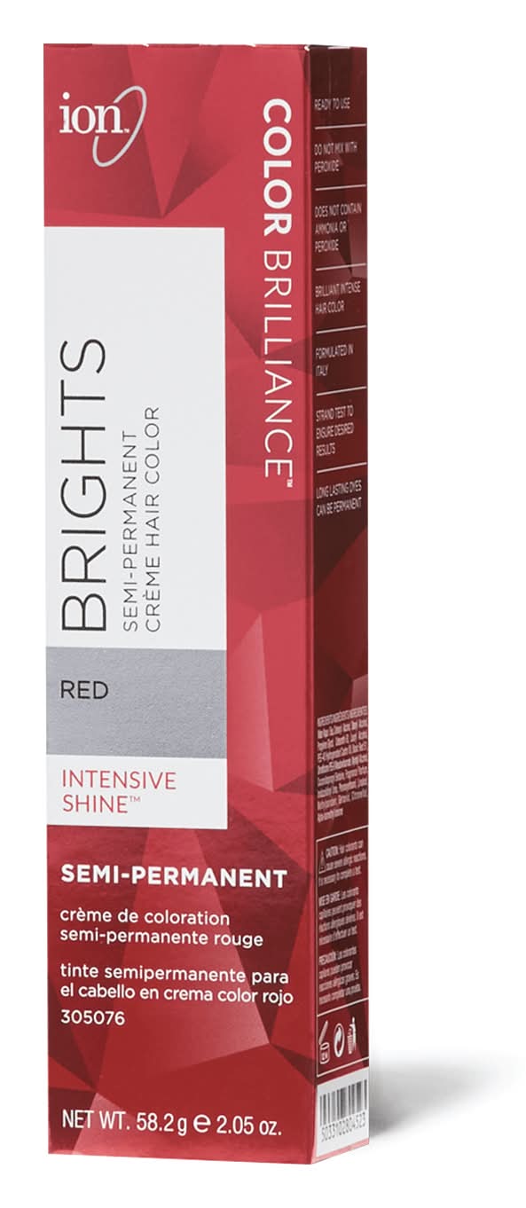 ion Color Brilliance Semi-Permanent Brights are high fashion hair color shades designed to give vivid, boldly intense results. In 20 to 40 minutes, ion Color Brilliance Brights deposits color on pre-bleached natural or color treated hair. ion Color Brilliance Brights can be applied to pre-lightened hair and natural or colored hair. • Color: Red • Size: 2.05