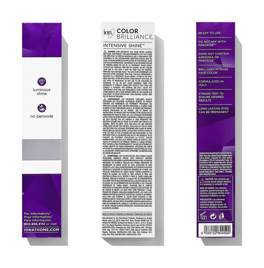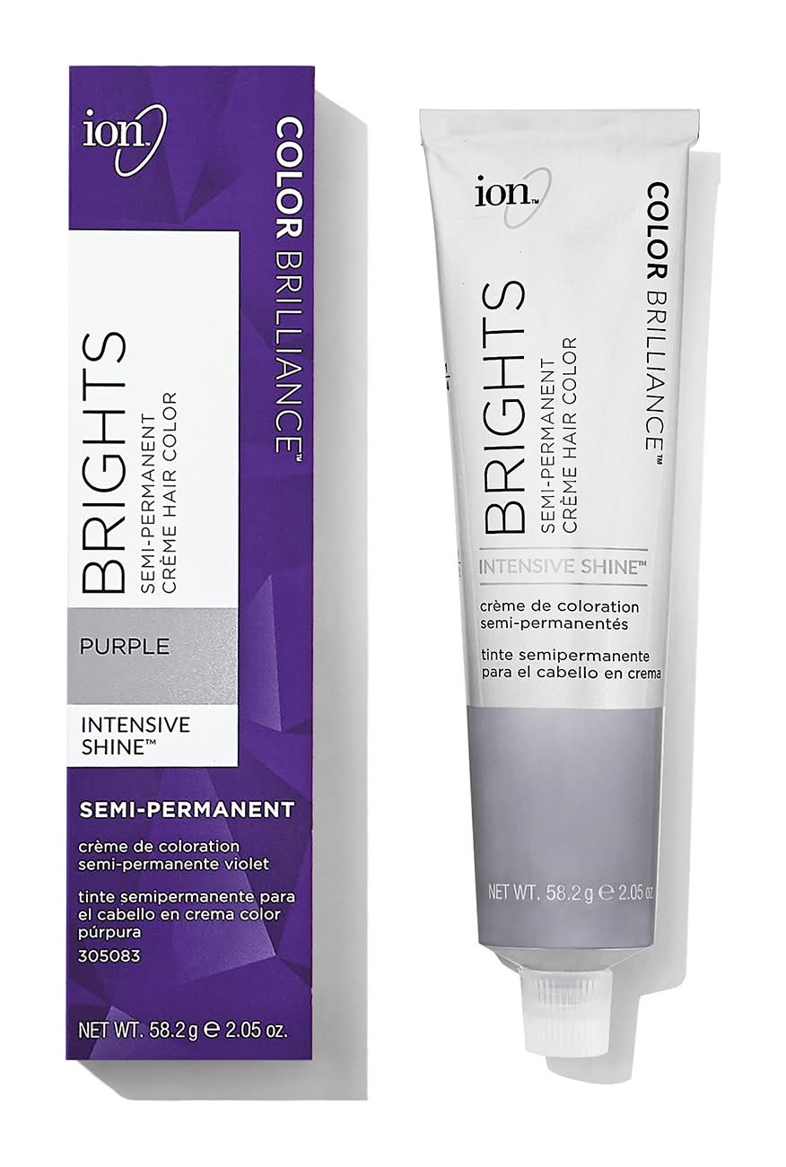 ion Color Brilliance Semi-Permanent Brights are high fashion hair color shades designed to give vivid, boldly intense results. In 20 to 40 minutes, ion Color Brilliance Brights deposits color on pre-bleached natural or color treated hair. ion Color Brilliance Brights can be applied to pre-lightened hair and natural or colored hair. • Color: Purple • Size: 2.05