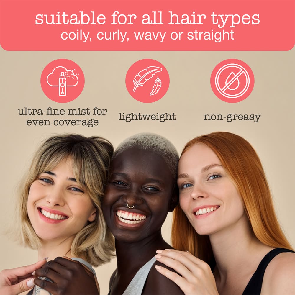 Spray evenly from an arm’s length onto dry hair.