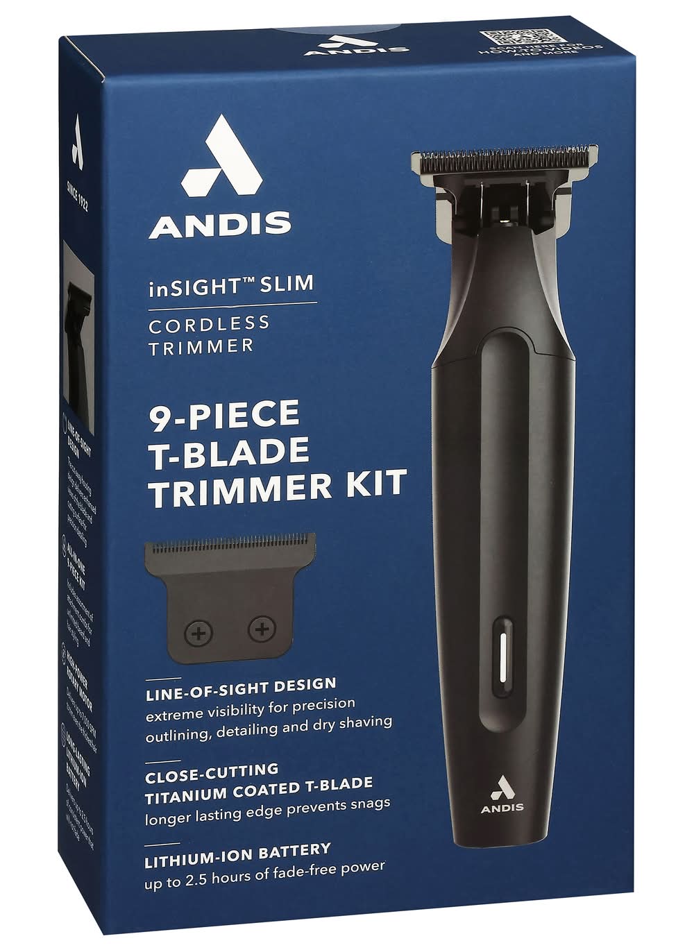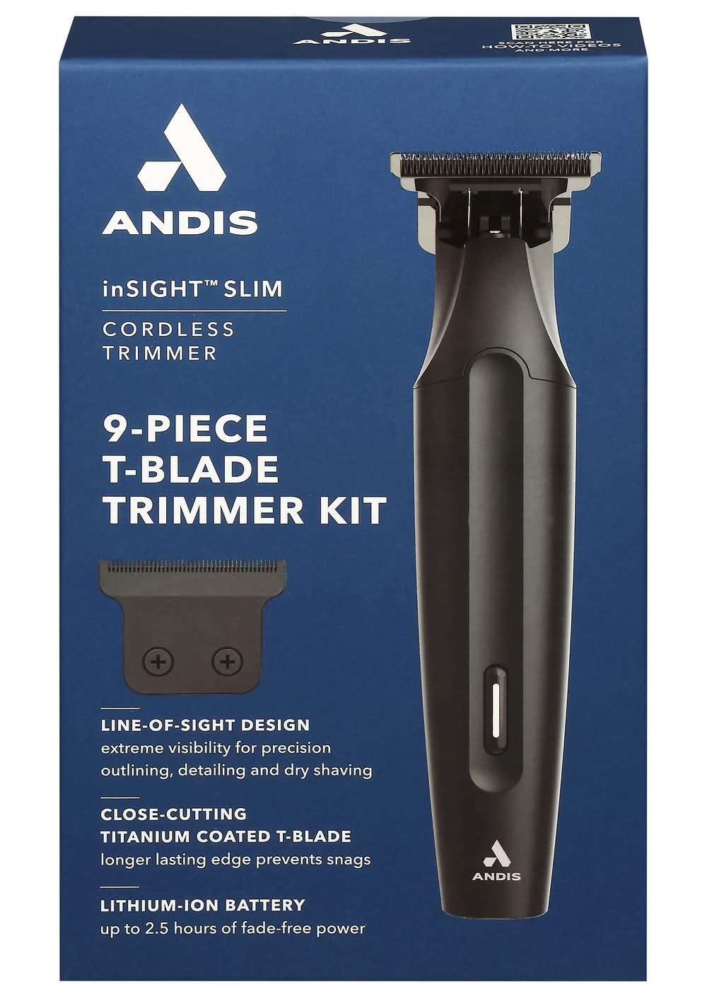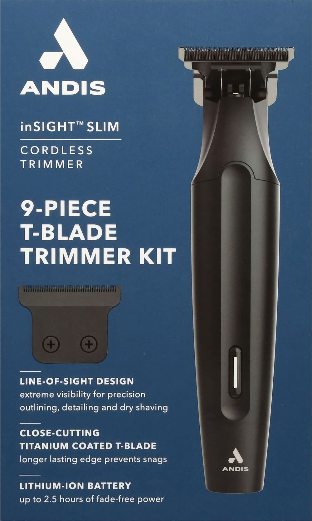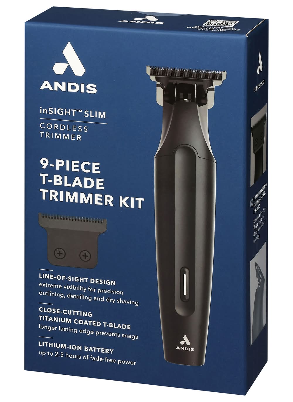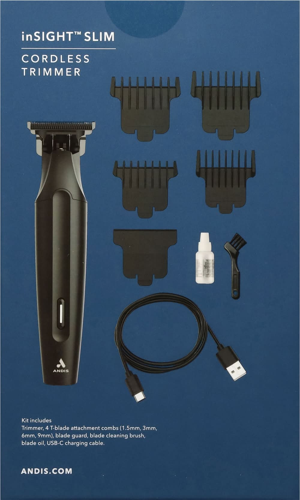 The Andis inSIGHT Slim Cordless Trimmer offers extreme visibility with it's Line-of Sight blade design: for precision outlining, detailing, and dry shaving. Clipper and Trimmer Sales are Final* Color: Matte black