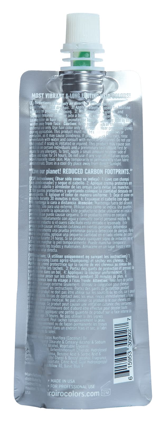 Iroiro is a 100% vegan and cruelty-free semi-permanent hair color. Most vibrant and long-lasting, iroiro color proves that natural does not mean color will fade quickly. As well as coloring your hair, Iroiro provides your hair with the nourishment it needs to stay healthy – which is especially important when it comes to coloring your hair – thanks to the natural coconut oil in the ingredients, which helps to keep your hair moisturized throughout the coloring process. Here’s a list of harsh chemicals. • Color: 350 neon green • Size: 4