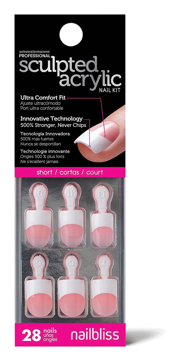 Dashing Diva Sculpted Acrylic French Short Square Nail Kit, Pink (28 ct)