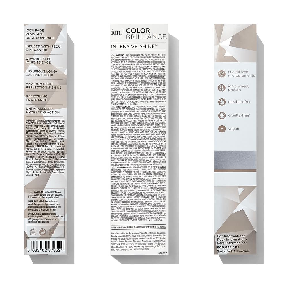 The advanced technology utilizes pure ionic micro pigments for deeper, more intense color deposit. ion Color Brilliance penetrates the cuticle layer of the hair and lodges in the cortex, ensuring 100% flawless gray coverage. High Lift shades lift up to 5 levels and tone without bleach. ion Hair Color’s superior quality, proprietary blends are formulated in Italy by our expert team of chemists to deliver unparalleled results natural and exotic ingredients with powerful high Color science relies on the power of micro-pigmentation — ion's microscopic pigment molecules oxidize slower, allowing them to penetrate deep into the cortex of each hair strand .Not to mention ammonia than the leading professional • Color: 9mb very light mushroom blonde • Size: 2.05