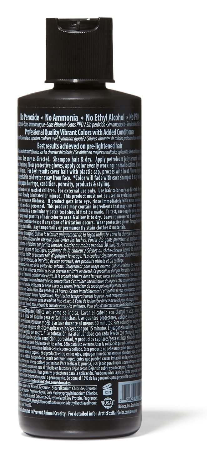 The dye contains none of the harsh chemicals often found in other dyes, such as peroxide, ammonia, ethyl alcohol, or PPD. All Arctic Fox colors are 100% vegan and 100% cruelty-free, and 15% of all profits are donated to animal-centered charities. • Color: Purple af • Size: 8