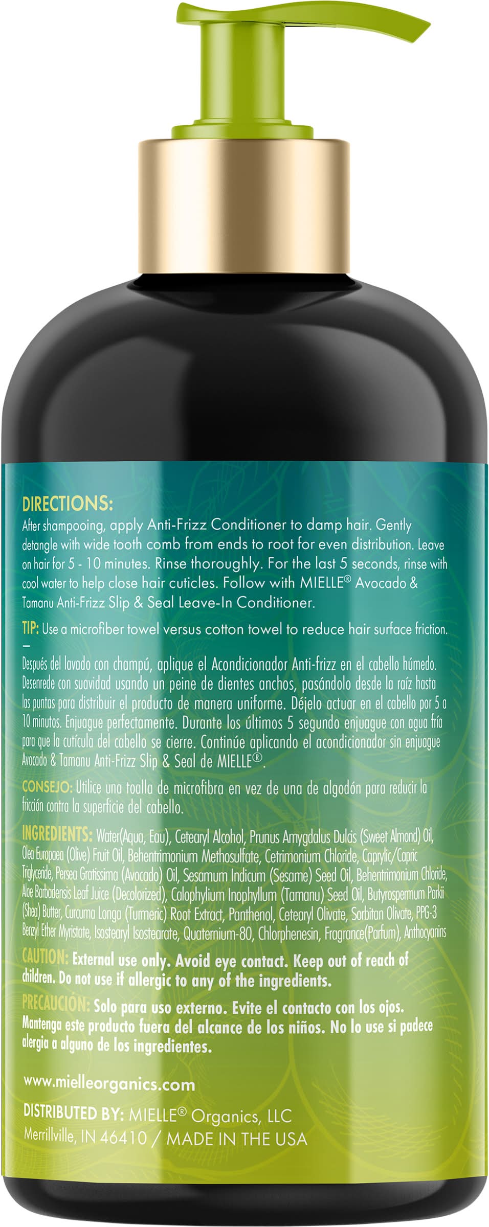 Directions; after shampooing, apply anti-frizz conditioner to damp hair. gently detangle with wide tooth comb from ends to root for even distribution. leave on hair for 5 - 10 minutes. rinse thoroughly. for the last 5 seconds, rinse with cool water to help close hair cuticles. follow with mielle avocado & tamanu anti-frizz slip & seal leave-in conditioner. tip: use a microfiber towel versus cotton towel to reduce hair surface friction. - directions: directions; after shampooing, apply anti-frizz conditioner to damp hair. gently detangle with wide tooth comb from ends to root for even distribution. leave on hair for 5 - 10 minutes. rinse thoroughly. for the last 5 seconds, rinse with cool water to help close hair cuticles. follow with mielle avocado & tamanu anti-frizz slip & seal leave-in conditioner. tip: use a microfiber towel versus cotton towel to reduce hair surface friction. good for 12 months once opened.