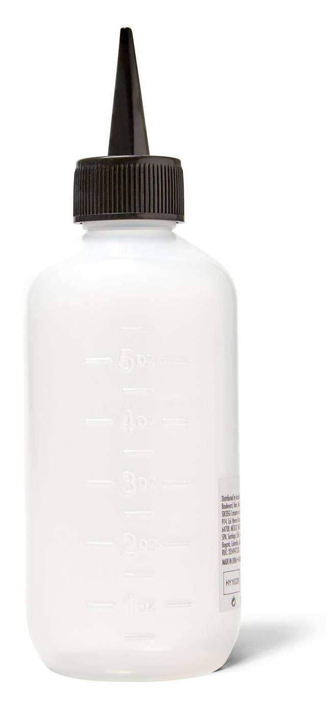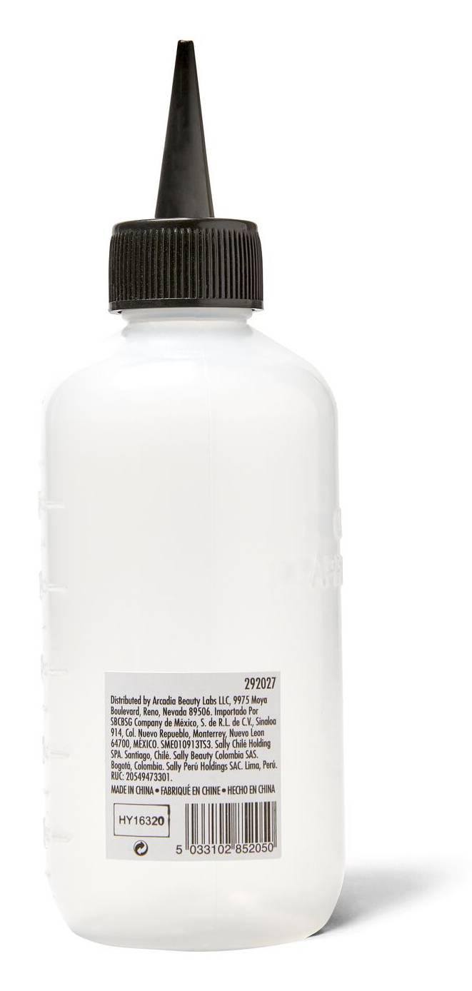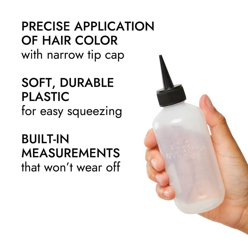 Keep your hair color game flawless with perfect precision application thanks to the Salon Care Narrow Tip Applicator Bottle. This bottle is made of soft, durable plastic, and it is easy to squeeze. The narrow tip allows for the product to be applied more directly, making it great for exact application of hair color. The bottle even features built-in measurements, so you can accurately measure and mix the perfect amount of color for your next look. Whether you're just learning how to lighten or stocking up on your favorites, Salon Care has you covered for all your lightening tools and essentials. From lighteners and developers to foils, brushes, bowls and more, Salon Care is committed to helping you with your at-home lightening and color needs. Packaging: Reusable