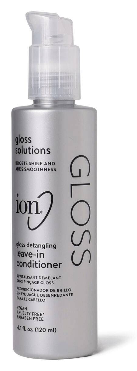 Unlock the professional secret to beautiful hair Ion Gloss Detangling Leave-in Conditioner boosts shine while adding hydration and helps to detangle hair. When used together as a system helps to boost shine by up to 99%. Gloss system includes ion Gloss Shampoo, ion Gloss In-Shower Treatment, ion Gloss Conditioner and ion Gloss Detangling Leave-In Conditioner. Packaging: Reusable