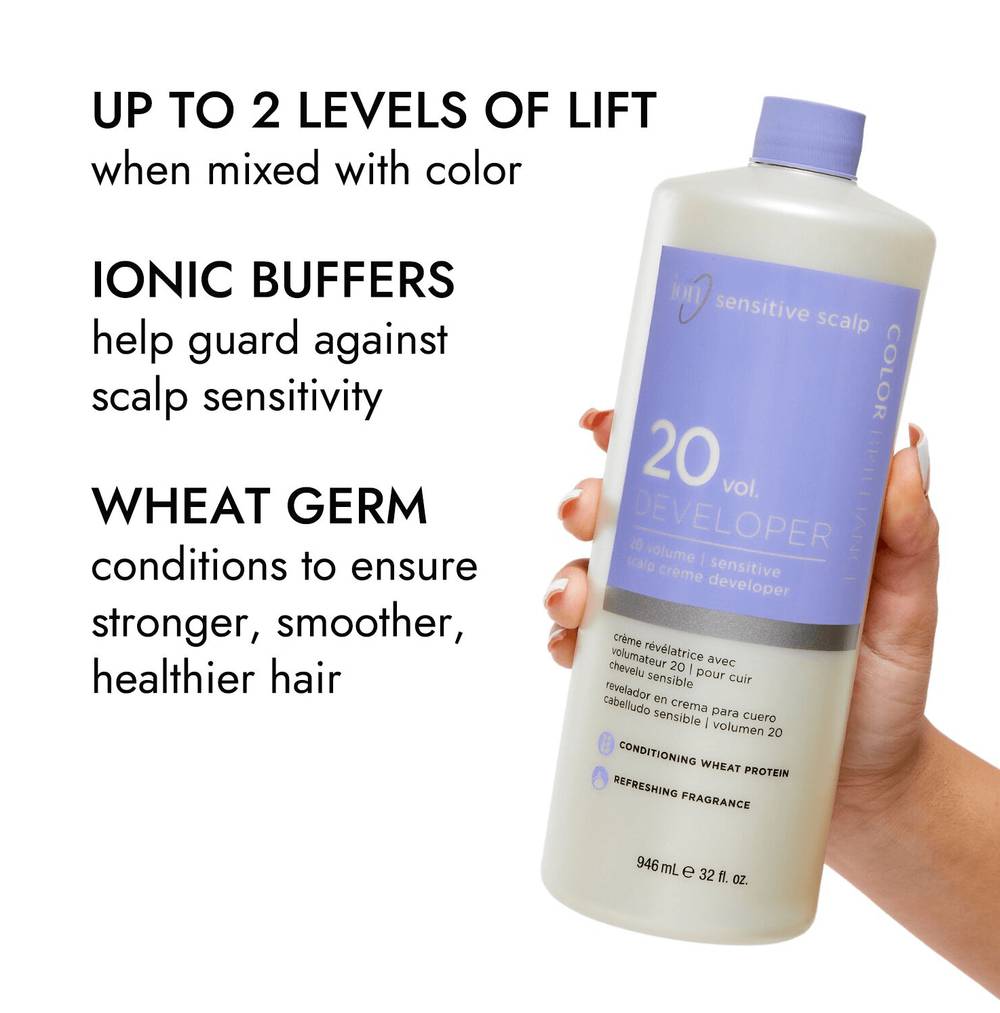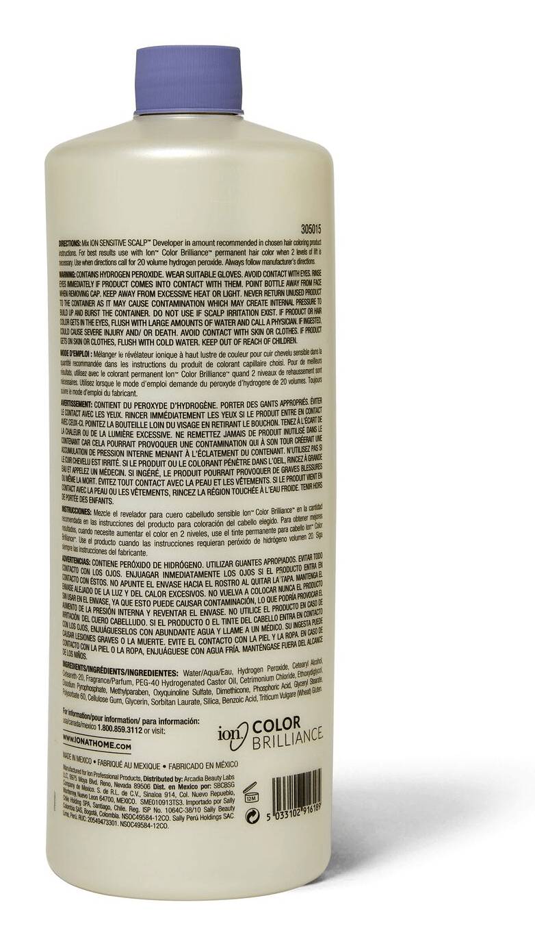 The European formula of ion Sensitive Scalp 20 Volume Crème Developer contains ionic buffers and conditioning wheat germ protein to help guard against scalp sensitivity. Ensures stronger, smoother, healthier hair during and after coloring. Mixes easily with any chosen hair color product when lightening up to two levels. From volumizing to smoothing, moisturizing to color-protecting, ion shampoos, conditioners, stylers and treatments are formulated to always provide impeccable, professional results for all hair types. No matter what your hair needs, ion has the perfect solution for you. Limit 6 per order for non-professional customers. Limit 24 per order for professional customers. • Size: 32 • Packaging: Reusable