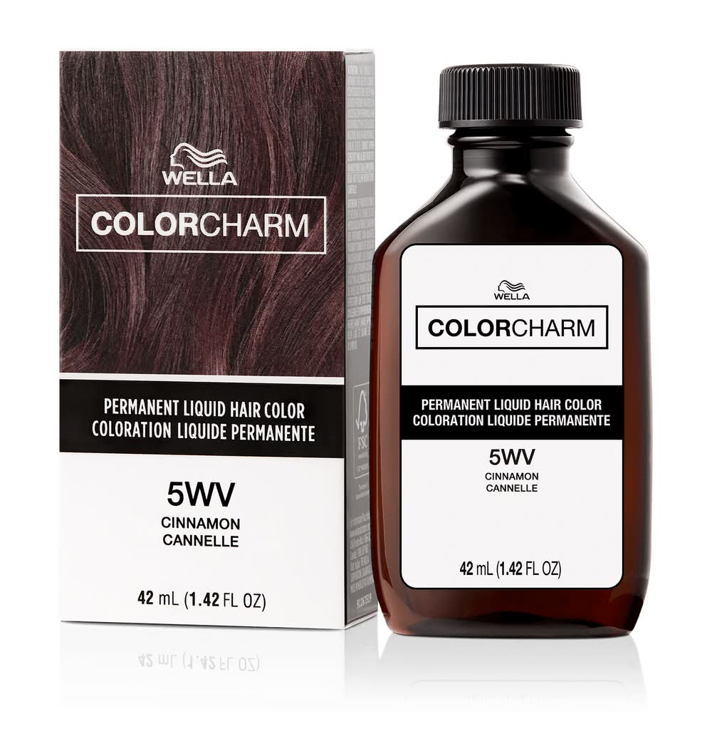 Wella color charm packaging utilizes a color-coded, tonal family system, making shade selection easy! Liquid Permanent Hair Color time tested formulations ensure consistent, predictable results. Liquid use Technology saturates, penetrates and fuses with the hair to deliver vibrant color that is exceptionally fade resistant. Boasts a gentle floral fragrance for a more pleasant coloring experience. • Color: 5wv cinnamon • Size: 1.42