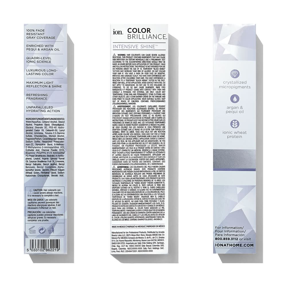 Has a palette of luxurious shades. The advanced ionic technology utilizes pure ionic micro pigments for deeper, more intense color deposit. ion Color Brilliance penetrates the cuticle layer of the hair and lodges in the cortex, ensuring 100% flawless gray coverage. High Lift shades lift up to 5 levels and tone without bleach. ion Hair Color’s superior quality, proprietary blends are formulated in Italy by our expert team of chemists to deliver unparalleled results. ion's unique system combines the finest quality natural and exotic ingredients with powerful high-tech compounds to achieve exquisite, brilliant color with superior gray coverage. ion Hair Color science relies on the power of micro-pigmentation — ion's microscopic pigment molecules oxidize slower, allowing them to penetrate deep into the cortex of each hair strand for long-lasting, fade-resistant color. These formulas are PPD free and enriched with hyaluronic acid, argan oil, pequi oil and botanicals to nourish and strengthen hair from within. Not to mention, ion Hair Color is gentle on hair, containing up to 38% less ammonia than the leading professional brands on the market. Unlock your hair’s true potential with ion’s cutting-edge, salon-quality color science, and bring hom... • Color: 3ir black cherry • Size: 2.05