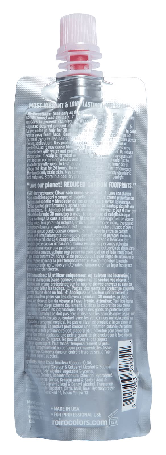 Iroiro is a 100% vegan and cruelty-free semi-permanent hair color. Most vibrant and long-lasting, iroiro color proves that natural does not mean color will fade quickly. Available in a 4oz eco-friendly spout pouch with tamper proof cap. As well as coloring your hair, Iroiro provides your hair with the nourishment it needs to stay healthy – which is especially important when it comes to coloring your hair – thanks to the natural coconut oil in the ingredients, which helps to keep your hair moisturized throughout the coloring process. Here’s a list of harsh chemicals WE DON'T USE in our products: PEGs, Paraben, Methylisothiazolinone, Methylchloroisothiazolinone, Synthetic fragrances, Peroxide, Ammonia, PPD, Alcohol. • Color: 90 red • Size: 4