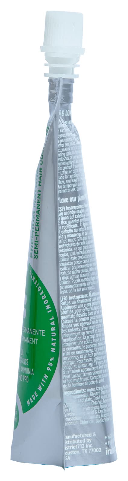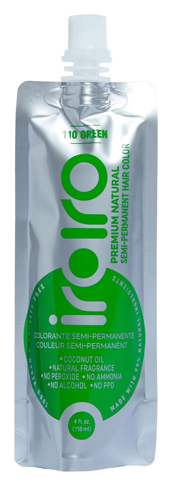 It is a 100% vegan and cruelty-free semi-permanent hair color. Most vibrant and long-lasting, iroiro color proves that natural does not mean color will fade quickly. Available in a 4oz eco-friendly spout pouch with tamper proof cap. As well as coloring your hair, Iroiro provides your hair with the nourishment it needs to stay healthy – which is especially important when it comes to coloring your hair – thanks to the natural coconut oil in the ingredients, which helps to keep your hair moisturized throughout the coloring process. Here’s a list of harsh chemicals WE DON'T USE in our products: PEGs, Paraben, Methylisothiazolinone, Methylchloroisothiazolinone, Synthetic fragrances, Peroxide, Ammonia, PPD, Alcohol. • Color: 110 green • Size: 4