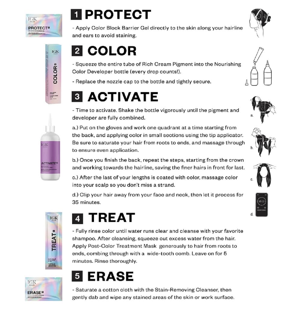A colorist-developed, easy-to-apply formula for vibrant, dimensional color. Clinically proven to leave hair shinier, stronger, and softer. The color kit has everything you need to color your hair from home: Color block barrier gel, Rich pigment cream, Nourishing color developer, Applicator bottle, Post-color treatment mask, Stain-removing cleanser • Color: Strawberry kiss • Size: 4.57