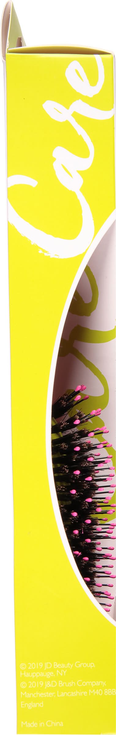 Equipped with natural boar bristles, this brush is designed to distribute your hair's oils to achieve a shiny and smooth finish. The exclusive IntelliFlex bristles offer a gentle detangling experience, promoting less damage and reduced force during brushing as evidenced by independent clinical trials. It's effective on all hair types and is ideal for spreading dry shampoo evenly throughout the hair. This brush not only detangles but also minimizes pain, prevents split ends, and reduces breakage. Its construction facilitates the creation of lustrous and vibrant hair without the discomfort associated with traditional styling brushes. Color: Pink shine
