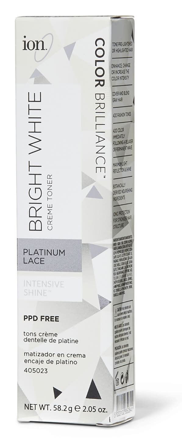ion Color Brilliance Bright White Toners help remove unwanted brassy tones or warm tones in hair. They can also be used to add cool, white and pastel tones. With maximum light reflection and shine, you can use multiple shades at once to create a multi-tone effect. From volumizing to smoothing, moisturizing to color-protecting, ion shampoos, conditioners, stylers and treatments are formulated to always provide impeccable, professional results for all hair types. No matter what your hair needs, ion has the perfect solution for you. • Color: Platinum lace • Size: 2.05
