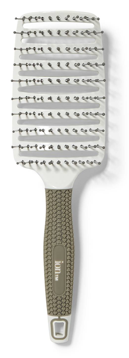 Spend less time waiting for your hair to dry with the ion Blowout Vent Brush. This lightweight design is perfectly vented to accelerate dry time while brushing and smoothing strands, helping to eliminate frizz and control any pesky hairs. The soft grip and curved head allow more heat to flow to the hair shaft, reducing drying time and making styling easier and more comfortable. From volumizing to smoothing, moisturizing to color-protecting, ion stylers, treatments, tools and more are made to always provide impeccable, professional results for all hair types. No matter what your hair needs, ion has the perfect solution for you.