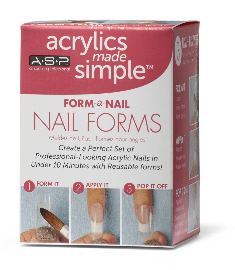 ASP Form-A-Nail is a quick and easy way to create a set of acrylic nails. This kit that allows you to create a set of acrylic nails in under 10 minutes.