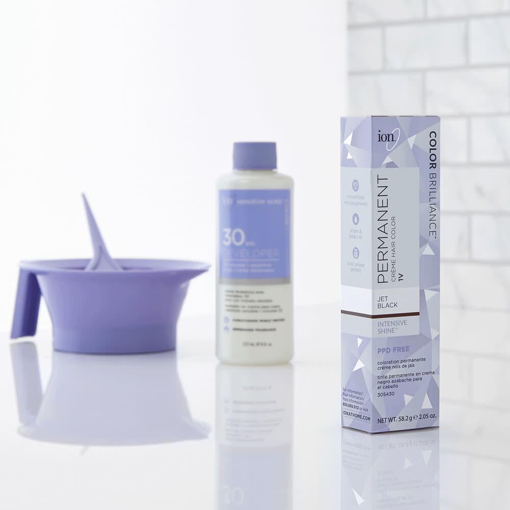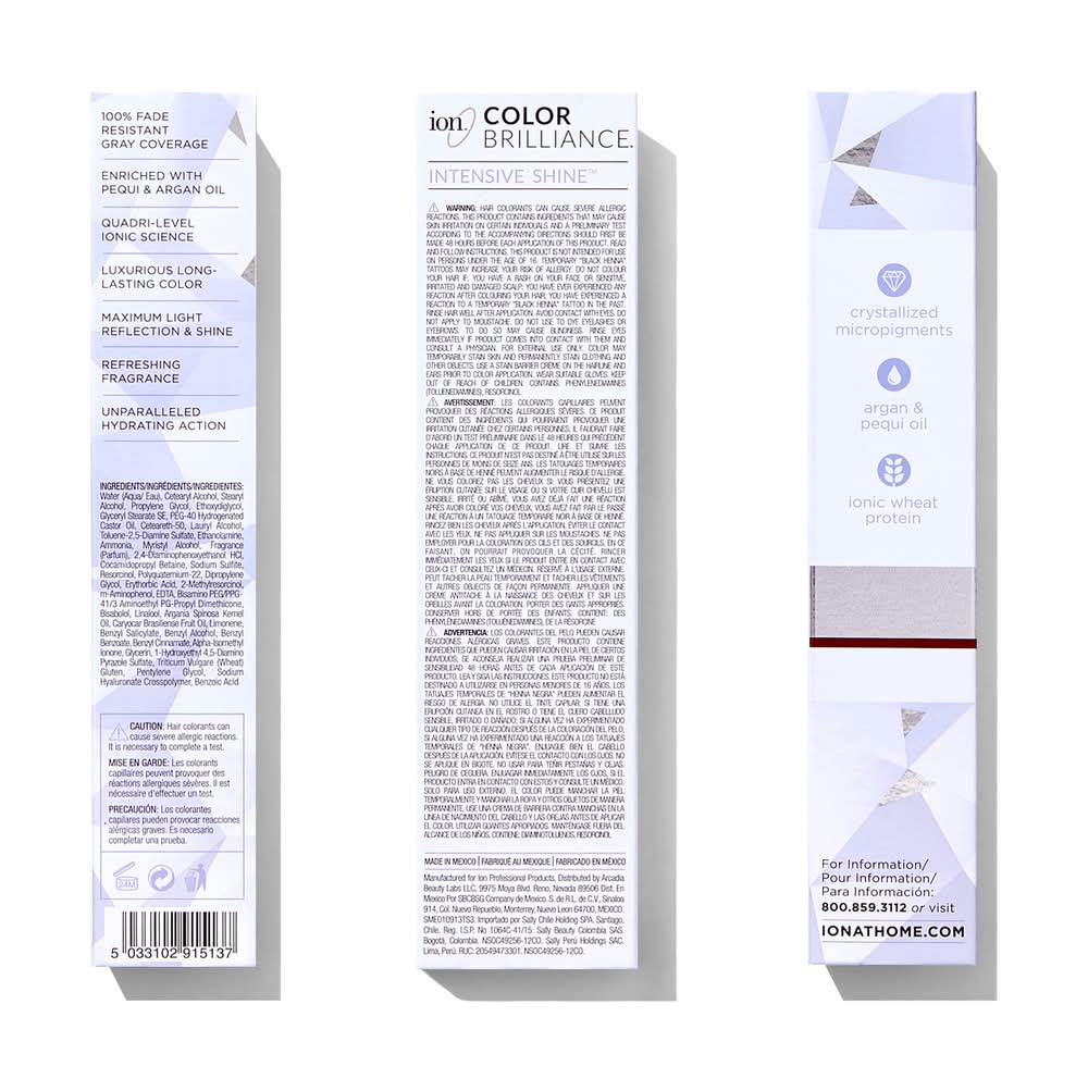 Ion Color Brilliance Permanent Creme Hair Color Has A Palette Of Luxurious Shades. The Advanced Ionic Technology Utilizes Pure Ionic Micro Pigments For Deeper, More Intense Color Deposit. Ion Color Brilliance Penetrates The Cuticle Layer Of The Hair And Lodges In The Cortex, Ensuring 100% Flawless Gray Coverage. High Lift Shades Lift Up To 5 Levels And Tone Without Bleach. Ion Hair Color’s Superior Quality, Proprietary Blends Are Formulated In Italy By Our Expert Team Of Chemists To Deliver Unparalleled Results. Ion's Unique System Combines The Finest Quality Natural And Exotic Ingredients With Powerful High-tech Compounds To Achieve Exquisite, Brilliant Color With Superior Gray Coverage. Ion Hair Color Science Relies On The Power Of Micro-pigmentation Ion's Microscopic Pigment Molecules Oxidize Slower, Allowing Them To Penetrate Deep Into The Cortex Of Each Hair Strand For Long-lasting, Fade-resistant Color. These Formulas Are Ppd Free And Enriched With Hyaluronic Acid, Argan Oil, Pequi Oil And Botanicals To Nourish And Strengthen Hair From Within. Not To Mention, Ion Hair Color Is Gentle On Hair, Containing Up To 38% Less Ammonia Than The Leading Professional Brands On The Market. Unlock Your Hair’s True Potential With Ion’s Cutting-edge, Salon-quality Color Science, And Bring Home • Color: 1v jet black • Size: 2.05 • Packaging: Reusable