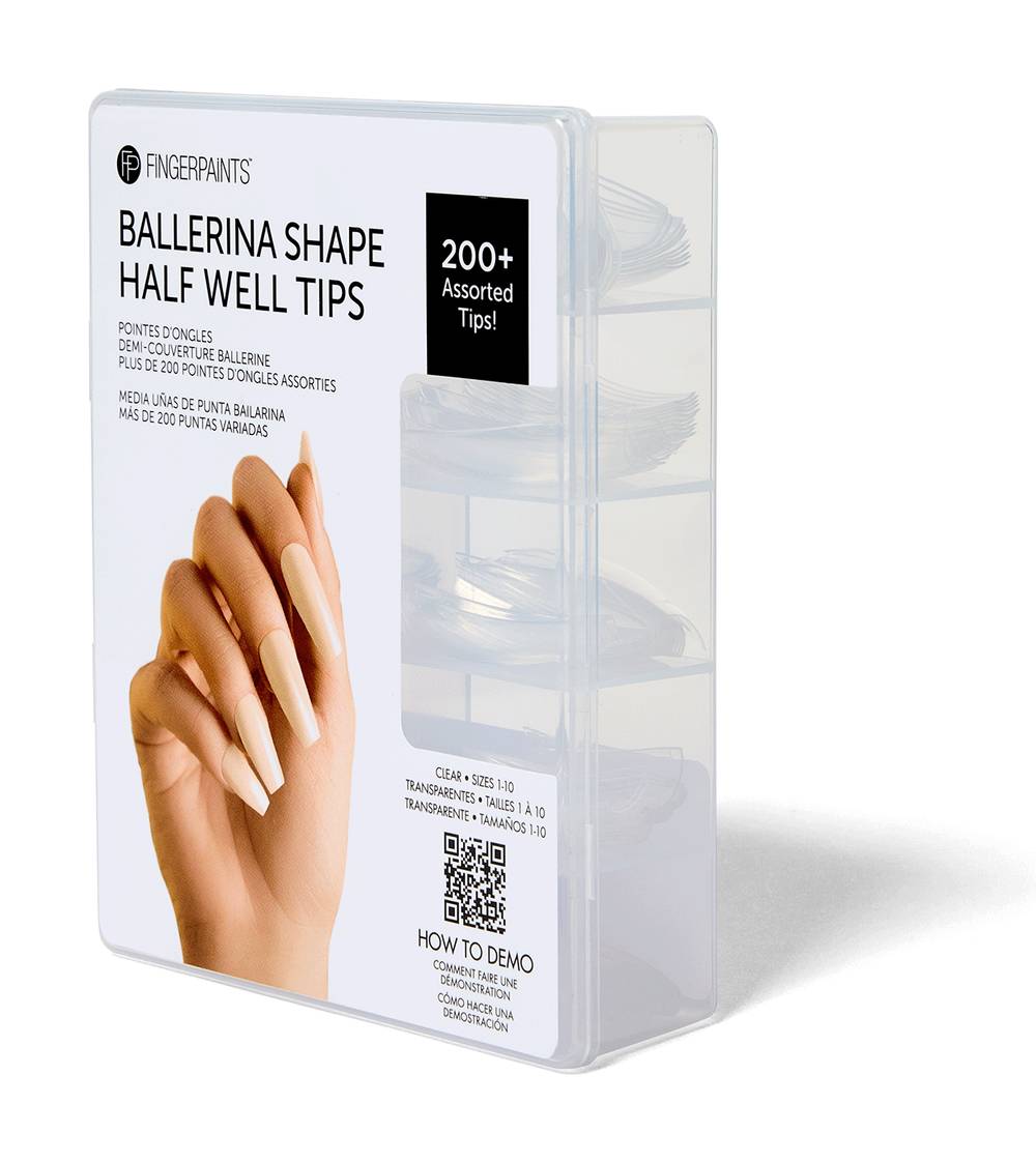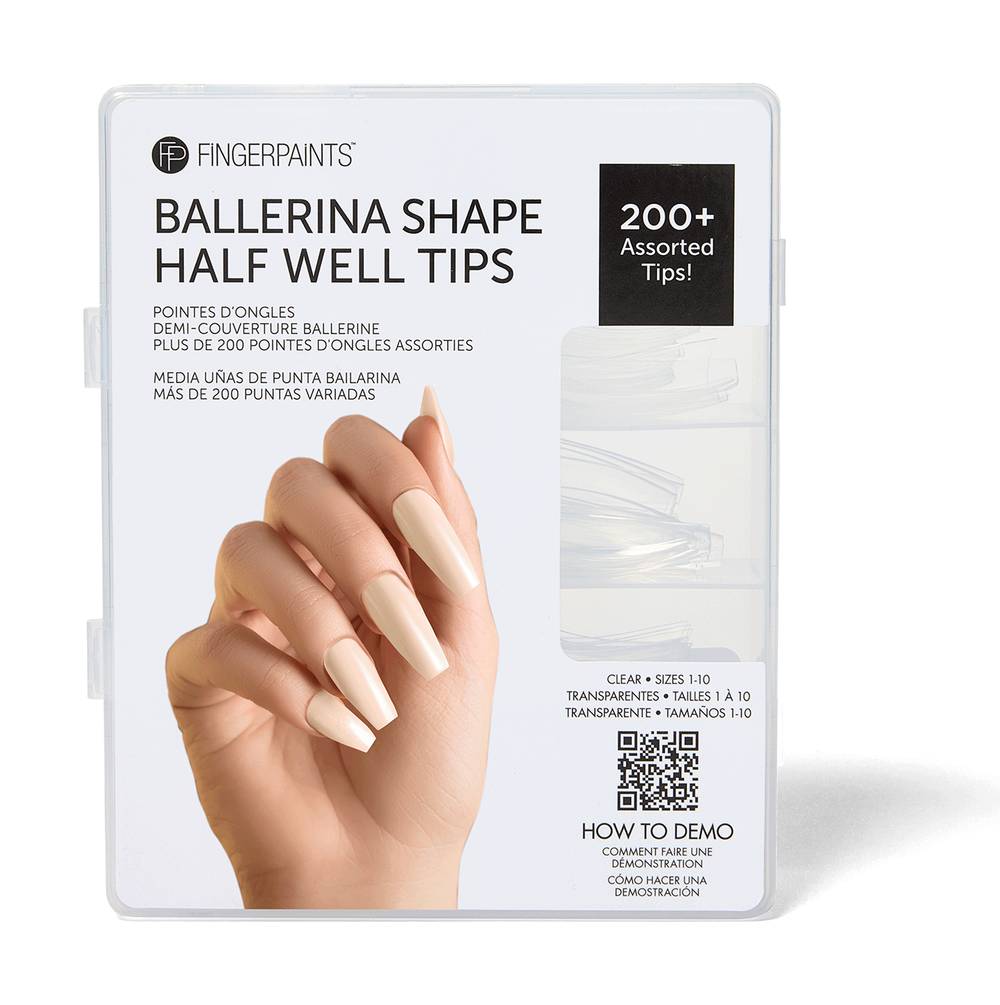 Finger Paints Ballerina Shape Half Well Tips False Nails, Size 1-10, Clear (200 ct)