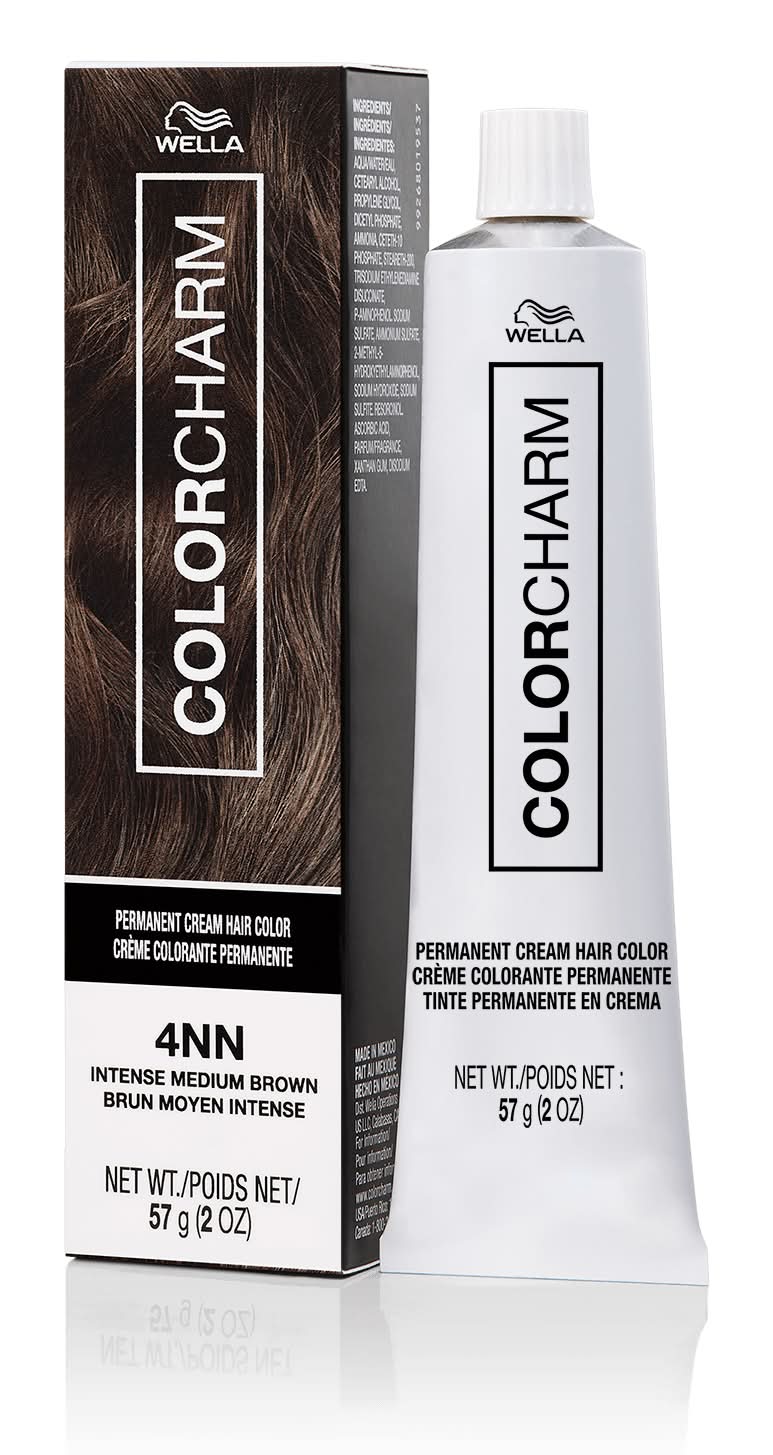 Introducing Wella colorcharm Permanent Cream Hair Color - the perfect harmony of color and care. We upgraded our trusted gel formula to a new cream formula with breakthrough technology providing additional benefits for your hair. This cream color includes BondGuard technology that helps protect bonds, combat damage and reduce breakage. A powerful blend of 5 nourishing lipids provide moisturization for soft and smooth hair. Plus this formula that includes Shea Butter, Jojoba Oil and Acai Berry Extract, will leave hair conditioned, full of shine and cover up to 100% of gray hair. Your next style statement is waiting — let Wella colorcharm help you make it! The best salon-quality, DIY color brand just got a new look. Now it’s your turn to switch up your look too! Wella colorcharm has a full range of products designed to help you enhance your unique style. And you can rest easy knowing that our formulas have remained 100% unchanged so you can expect the same great results you’ve come to know and trust without wasting time on a trip to the salon. Envision yourself with a new look and make it come to life with Wella colorcharm! Your Color, Your Vibe. • Color: 4nn intense medium brown • Size: 2