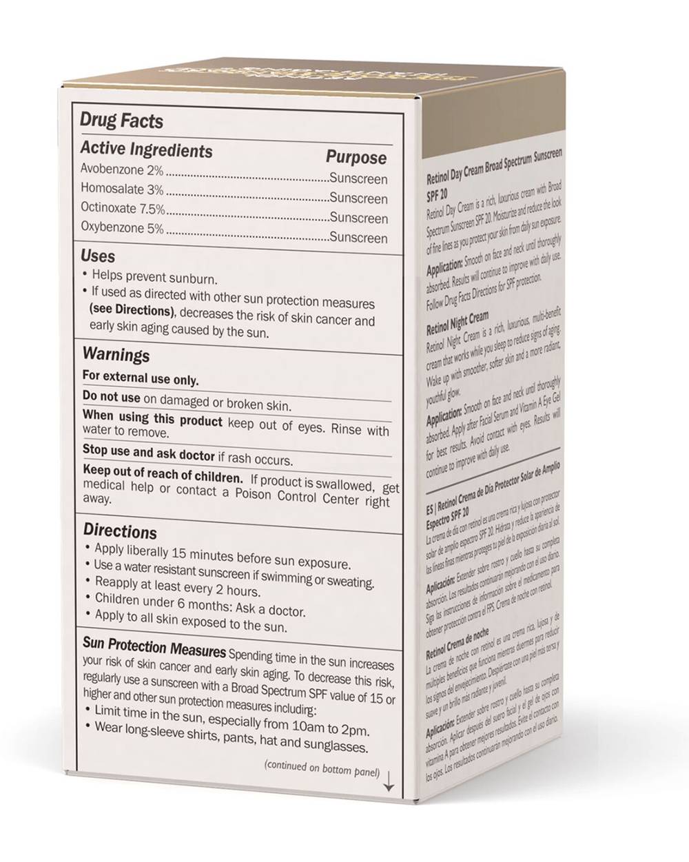 Day Cream with Broad Spectrum SPF 20. It is powered by dermatologist-recommended Vitamin A that improves skin texture through exfoliation to minimize the look of fine lines and wrinkles. Together, this dynamic skincare duo works day and night . Day Cream Net Weight 1 oz & Night Cream Net Wight 1 oz Pack size: 2