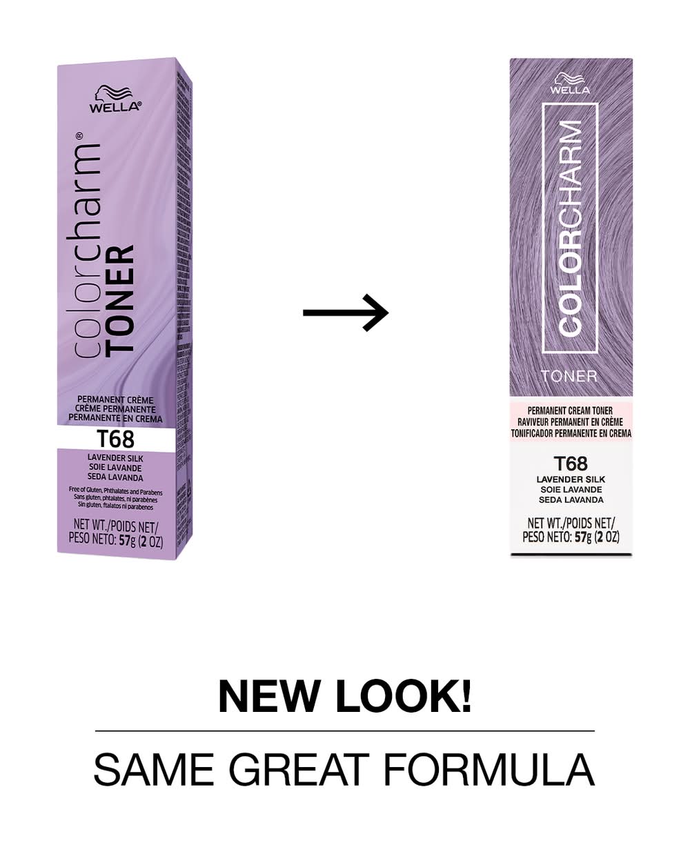 Discover your best blonde with new WELLA color charm Permanent Crème Toners. From the creators of the 1 permanent toner in the US these 8 new crème toner shades let you neutralize brass and perfect your blonde with up to 90% less breakage With a selection of 4 icy blonde tones and 4 pastel blonde tones, you now have the freedom to express your creativity with subtle to bold blonde looks and perfectly even tone from root to end. WELLA color charm liquid toner is the No.1 permanent toner in the US. WELLA calculation based on data reported. • Color: T68 lavender silk • Size: 2