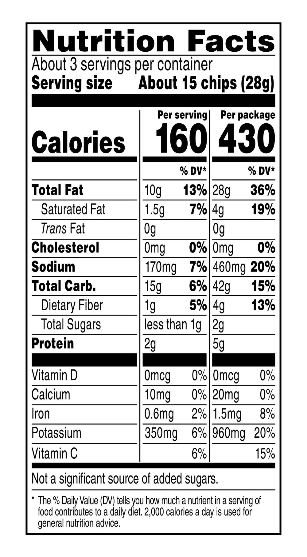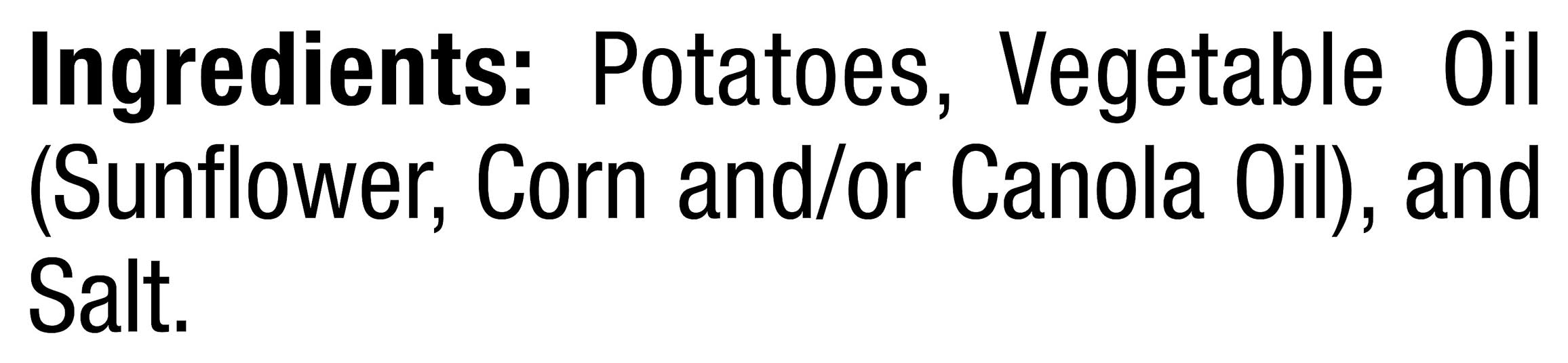 Ingredients: Potatoes, Vegetable Oil (Sunflower, Corn and or Canola Oil), and Salt