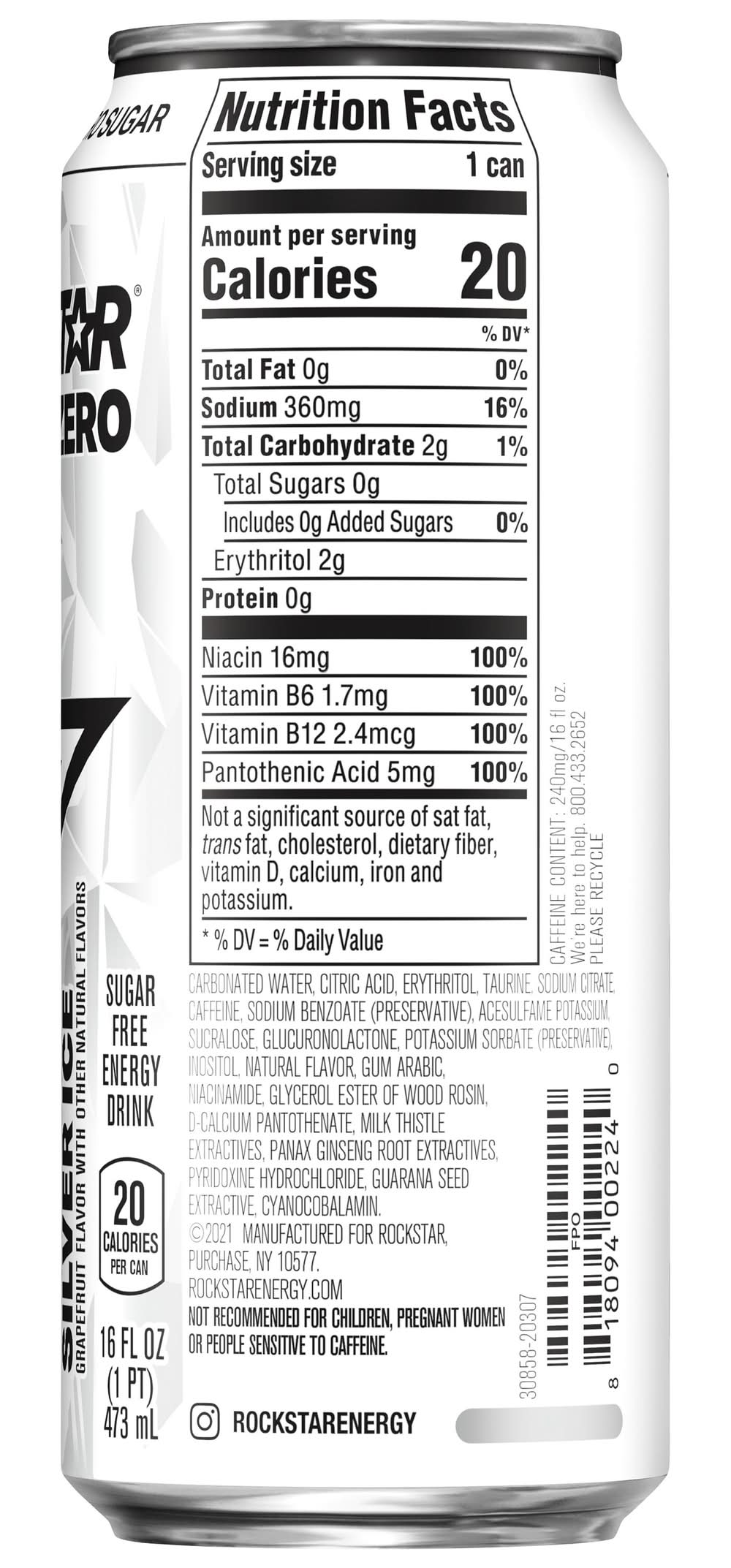 Rockstar Pure Zero Energy Drink, Silver Ice Grapefruit (16 fl oz)