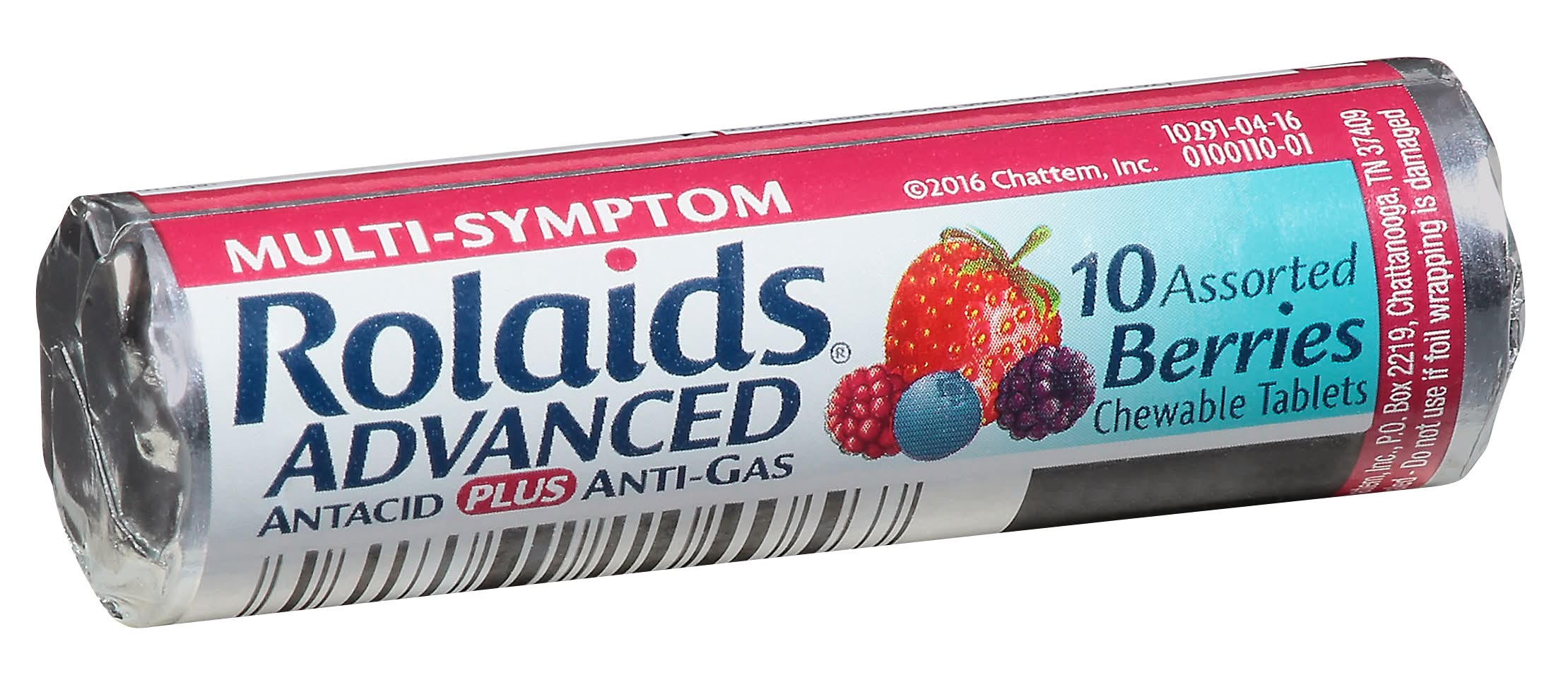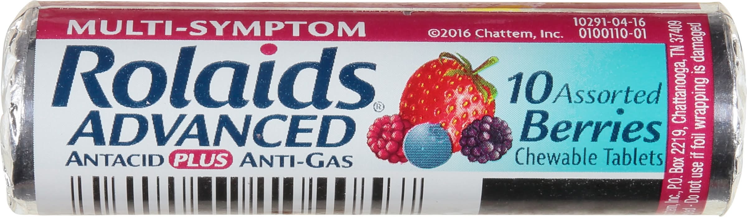 Rolaids Advanced Assorted Berries Antacid Plus Anti Gas Chewable Tablets (10 ct)