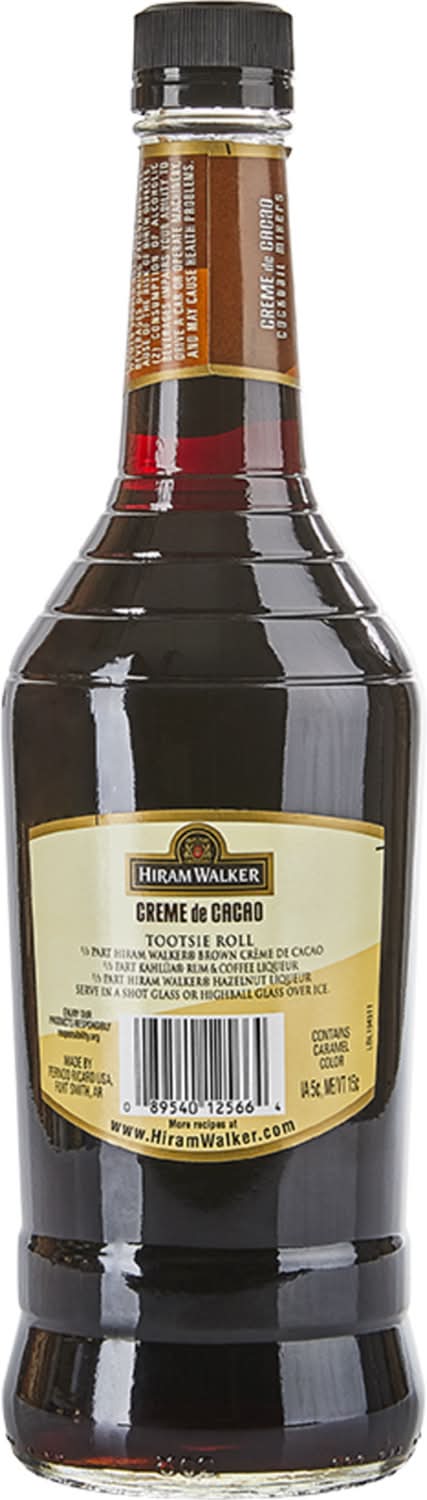Hiram Walker Crème de Cacao taste is creamy chocolate with notes of toffee and auburn color. Alcohol by volume: 15%