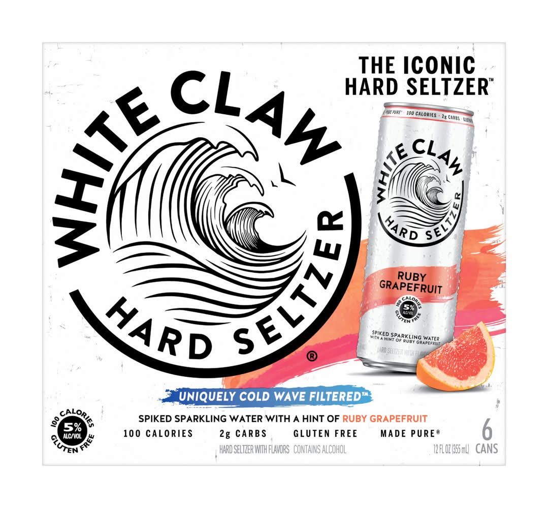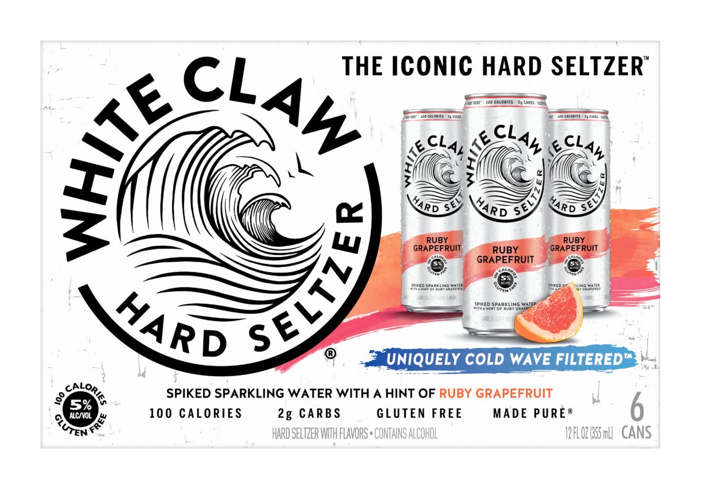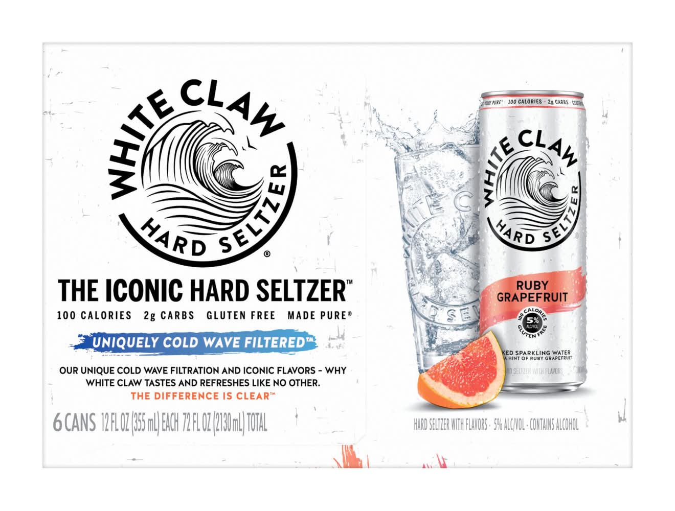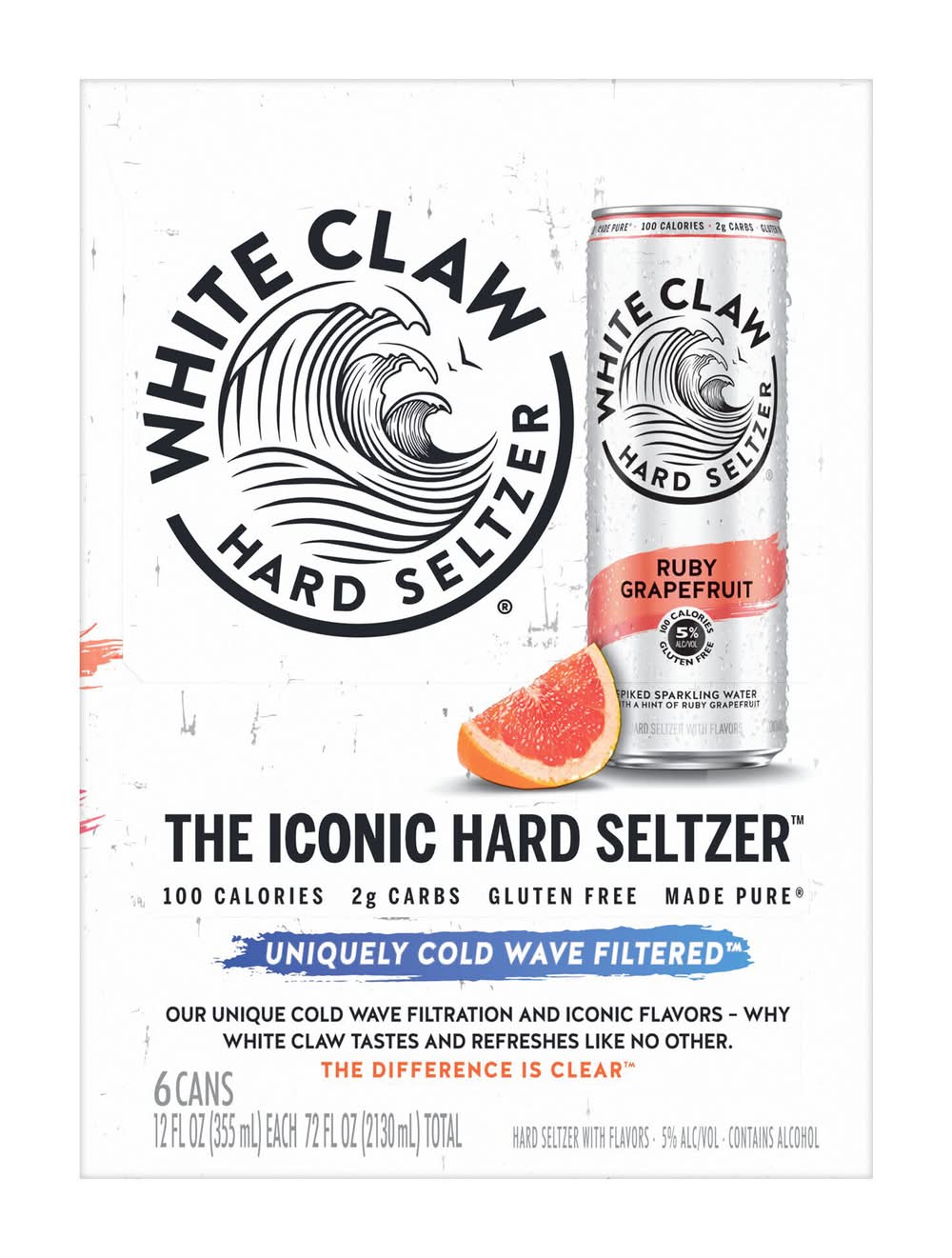 White Claw Uniquely Cold Wave Filtered Hard Seltzer, Ruby Grapefruit (6 x 12 fl oz)