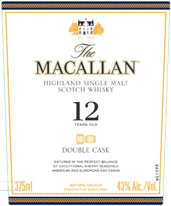 The Macallan Double Cask 12 Year Old Highland Single Malt Scotch Whisky, Honey-Citrus-Ginger (375 ml)