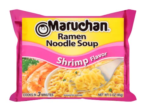 Maruchan ramen noodle soup provides a quick meal solution, ready in minutes, and contains zero grams of trans fat. Made in the USA, these versatile ramen noodles deliver a distinct shrimp flavor, suitable for enjoying as a main course or as an enhancing side dish. They can also be used creatively in salads to provide a seafood flavor. Flavor: Shrimp