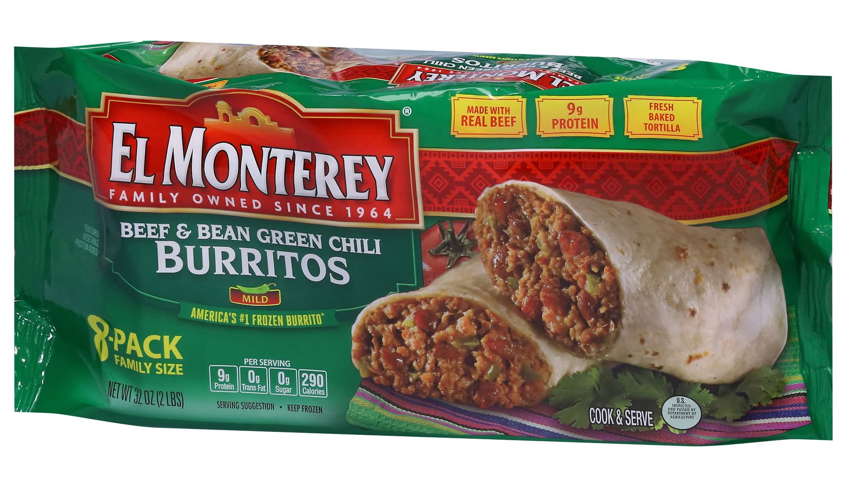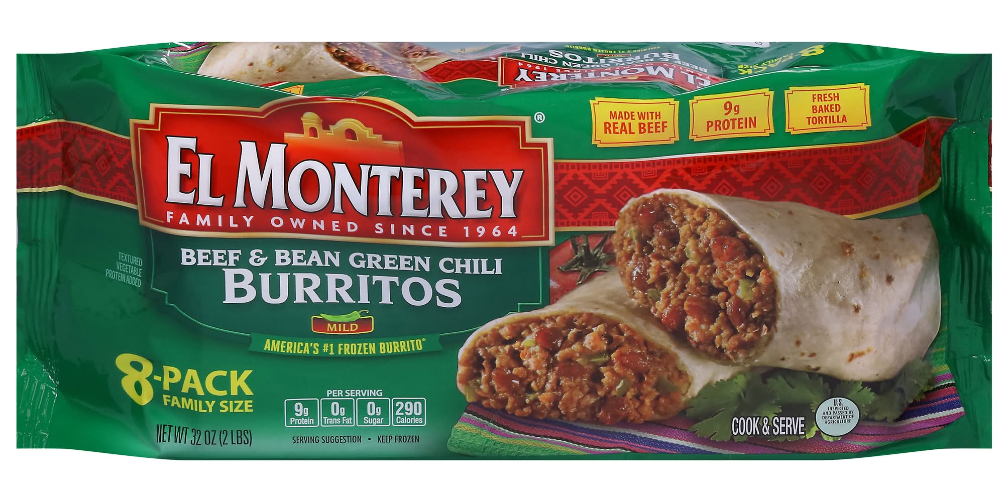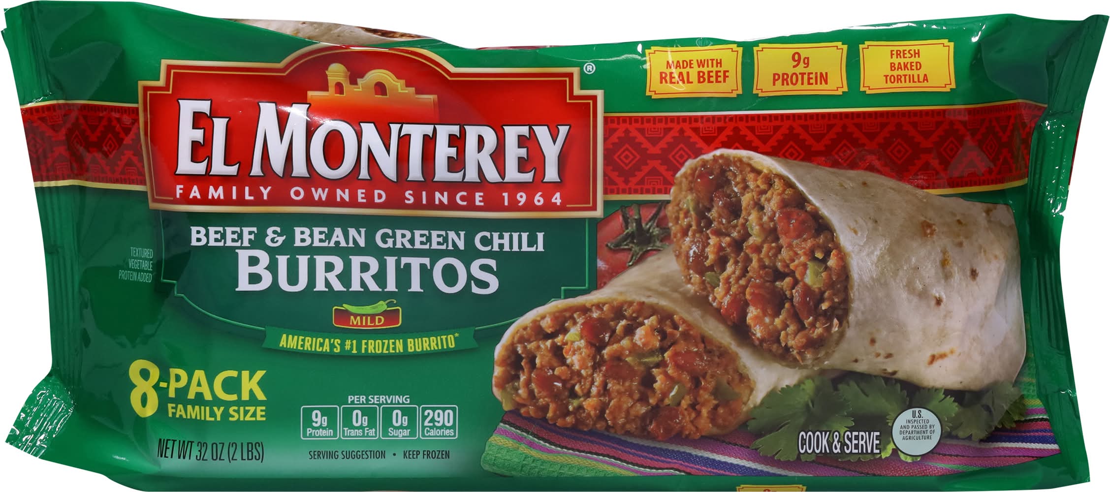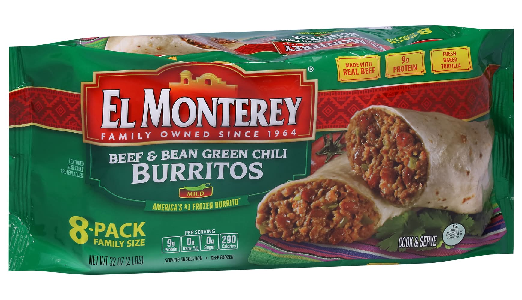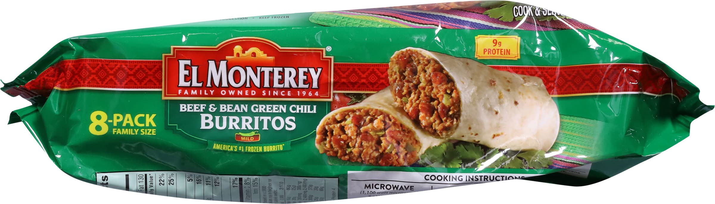 El Monterey Beef & Bean Green Chili Burritos (32 oz, 8 ct)