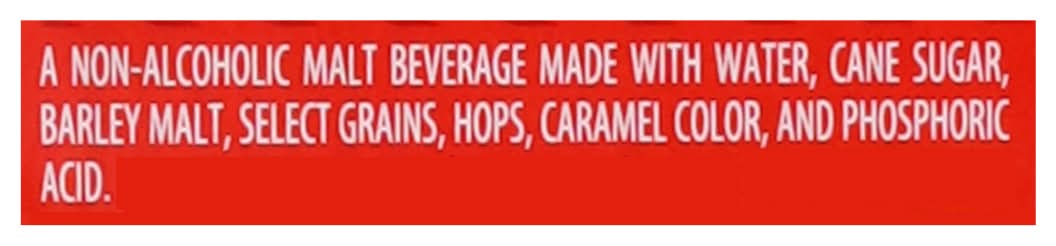 Ingredients: a Non-Alcoholic Malt Beverage Made with Water, Cane Sugar, Barley Malt, Select Grains, Hops, Caramel Color, and Acid Contains: Barley